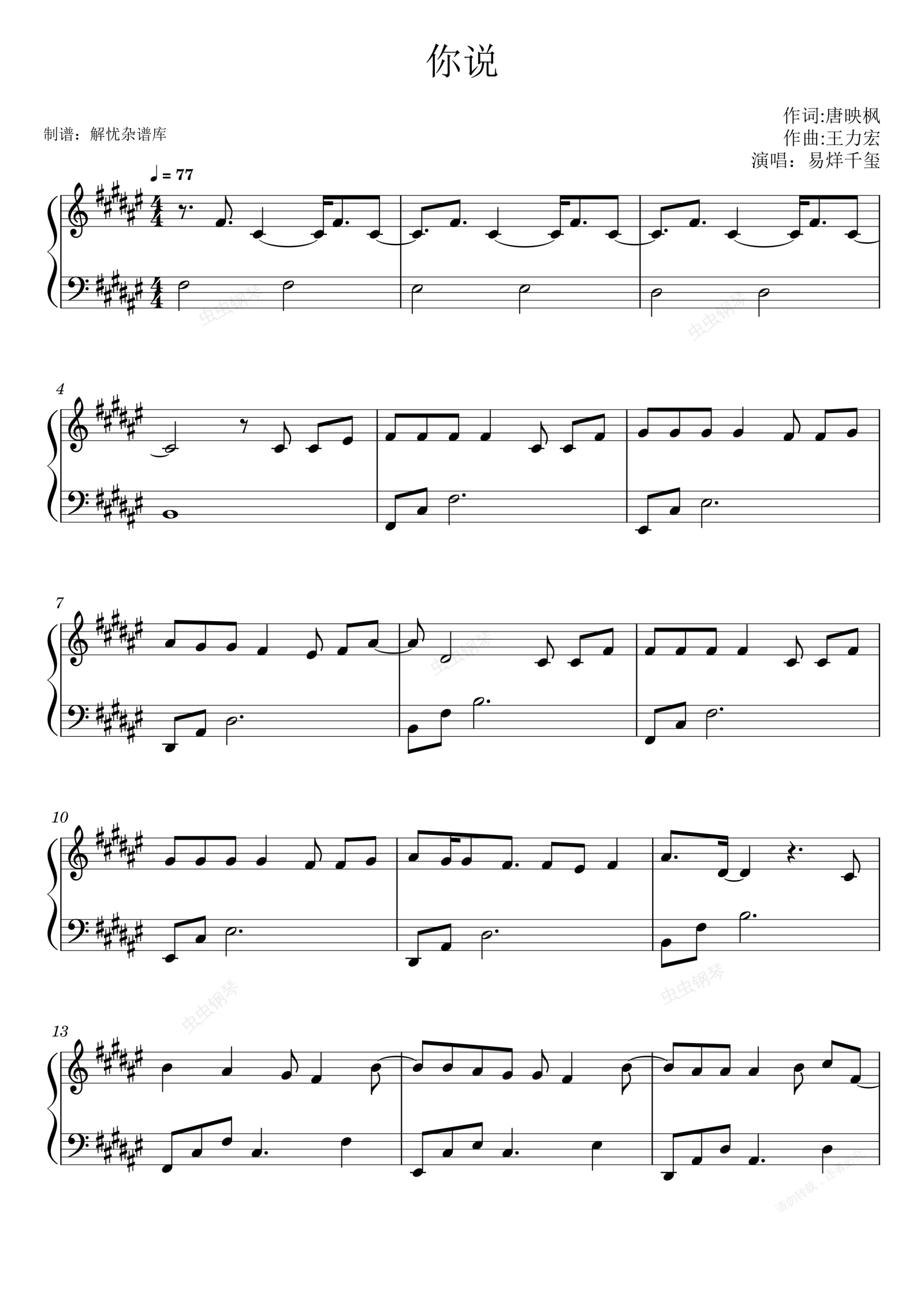 易烊千玺一开始听到王力宏为他所写歌曲《你说》的demo的时,觉得特别好听,他很喜欢这种感觉,就直接把歌曲的风格确定了下来。因为他特别喜欢唐映枫老师的风格,所以特意找了唐映枫老师来填词