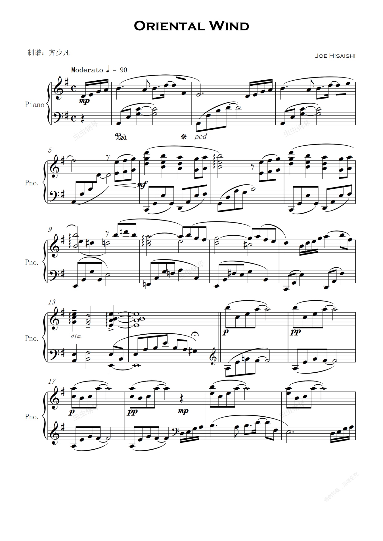 钢琴谱:久石让 Oriental Wind(东方之风)
