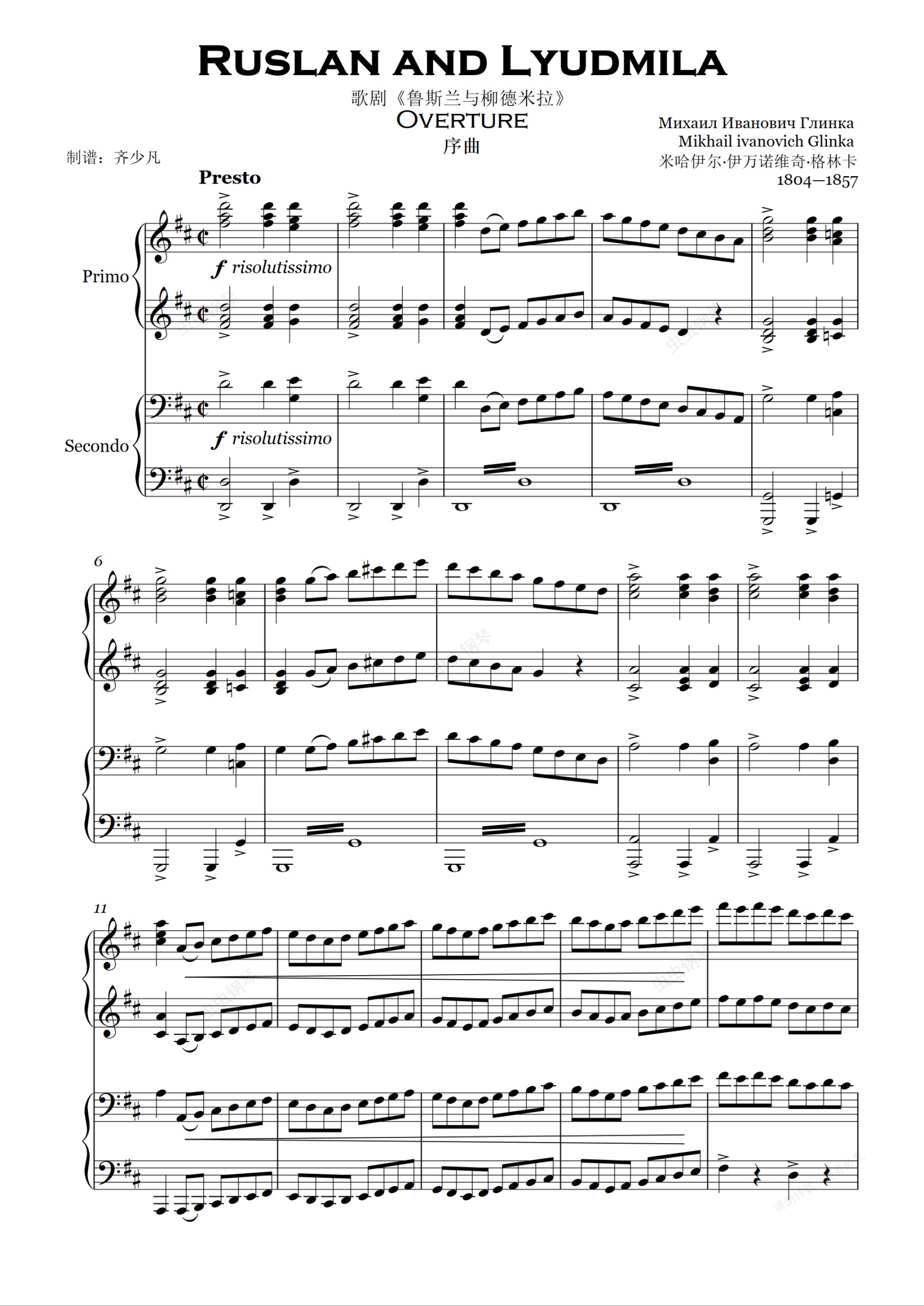 【四手联弹】鲁斯兰与柳德米拉-序曲 Ruslan and Lyudmila Overture