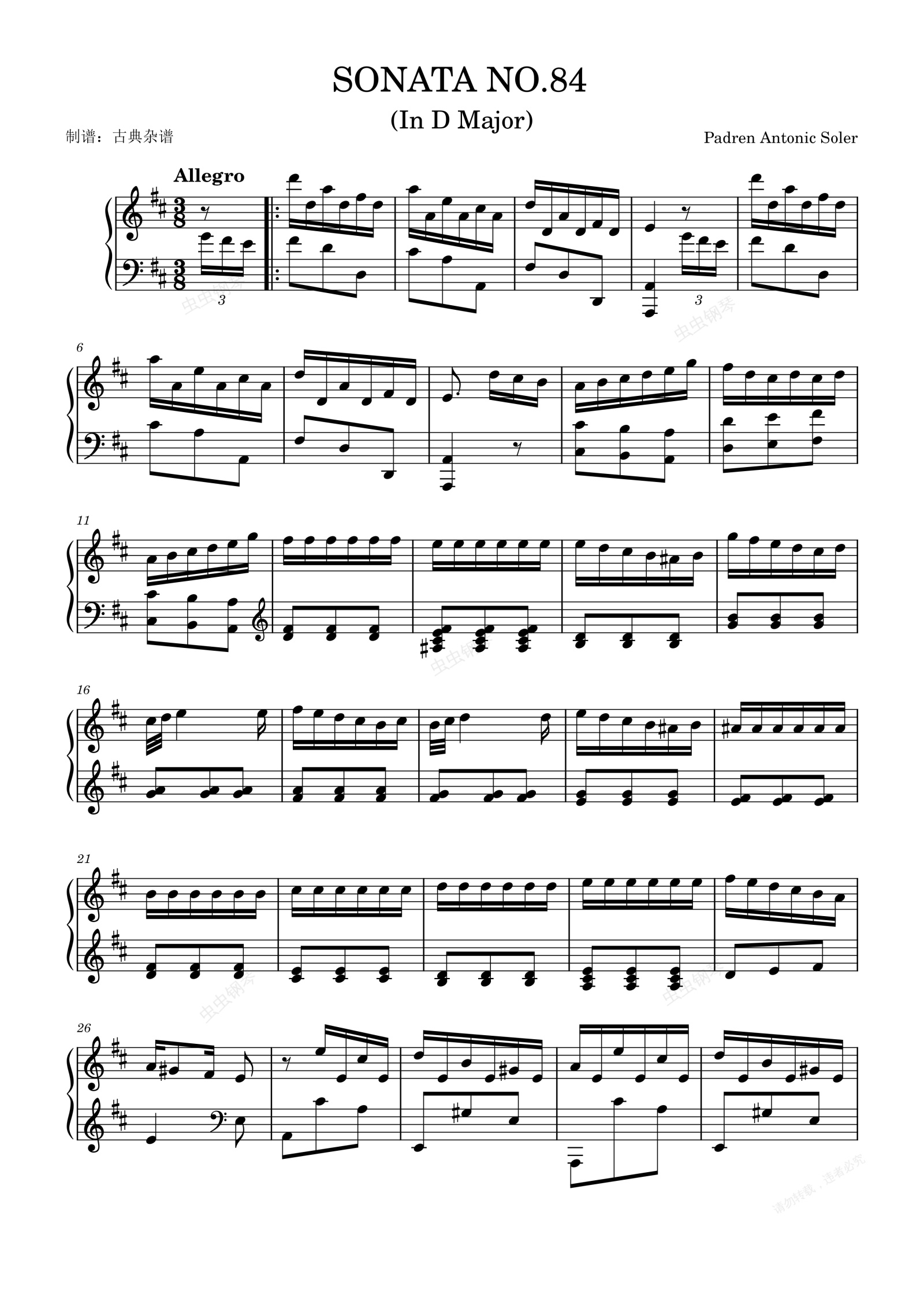 钢琴谱:D大调奏鸣曲 安东尼奥·索勒 No.84
