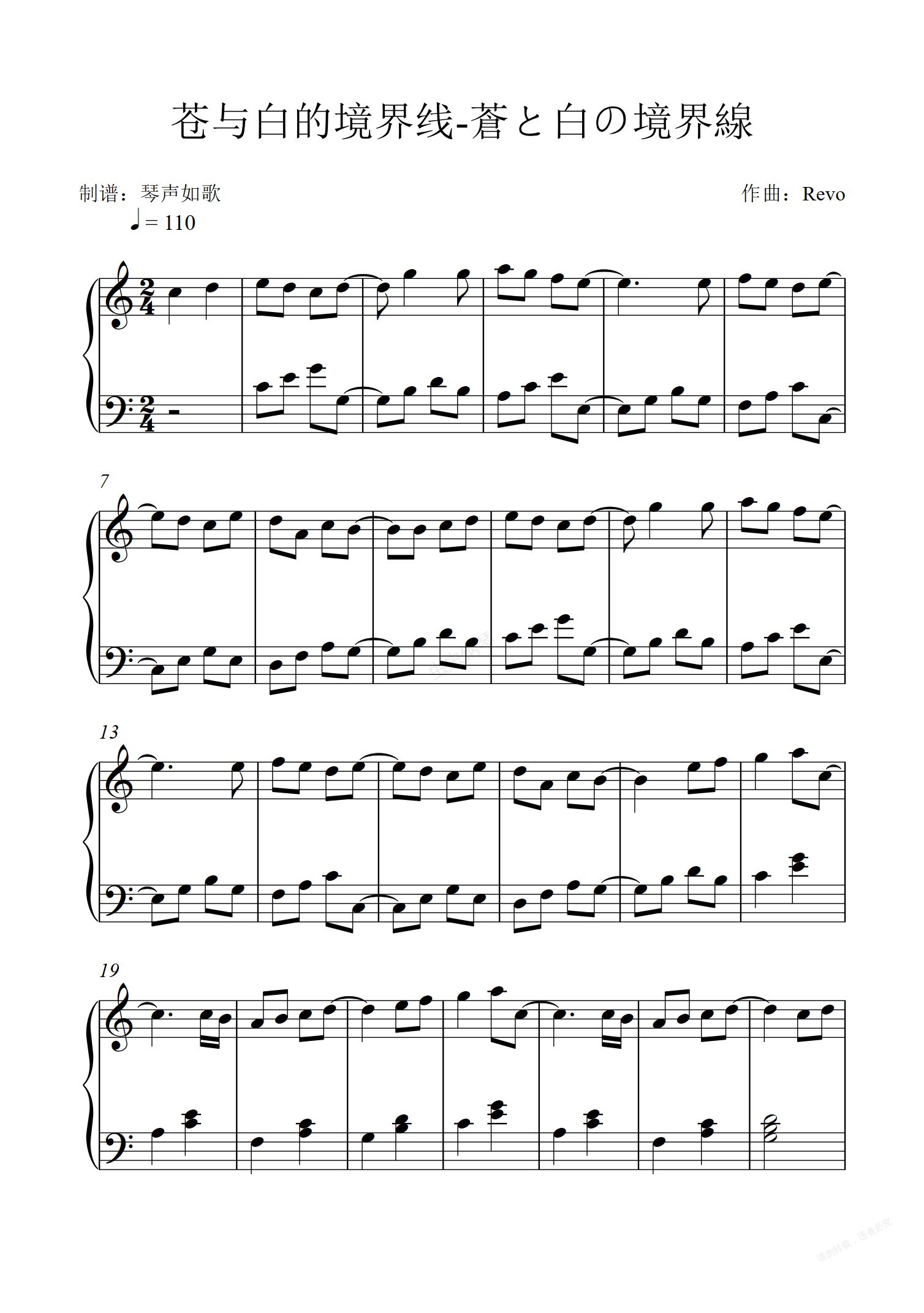 钢琴谱:苍与白的境界线-蒼と白の境界線 【好听易弹纯音乐】