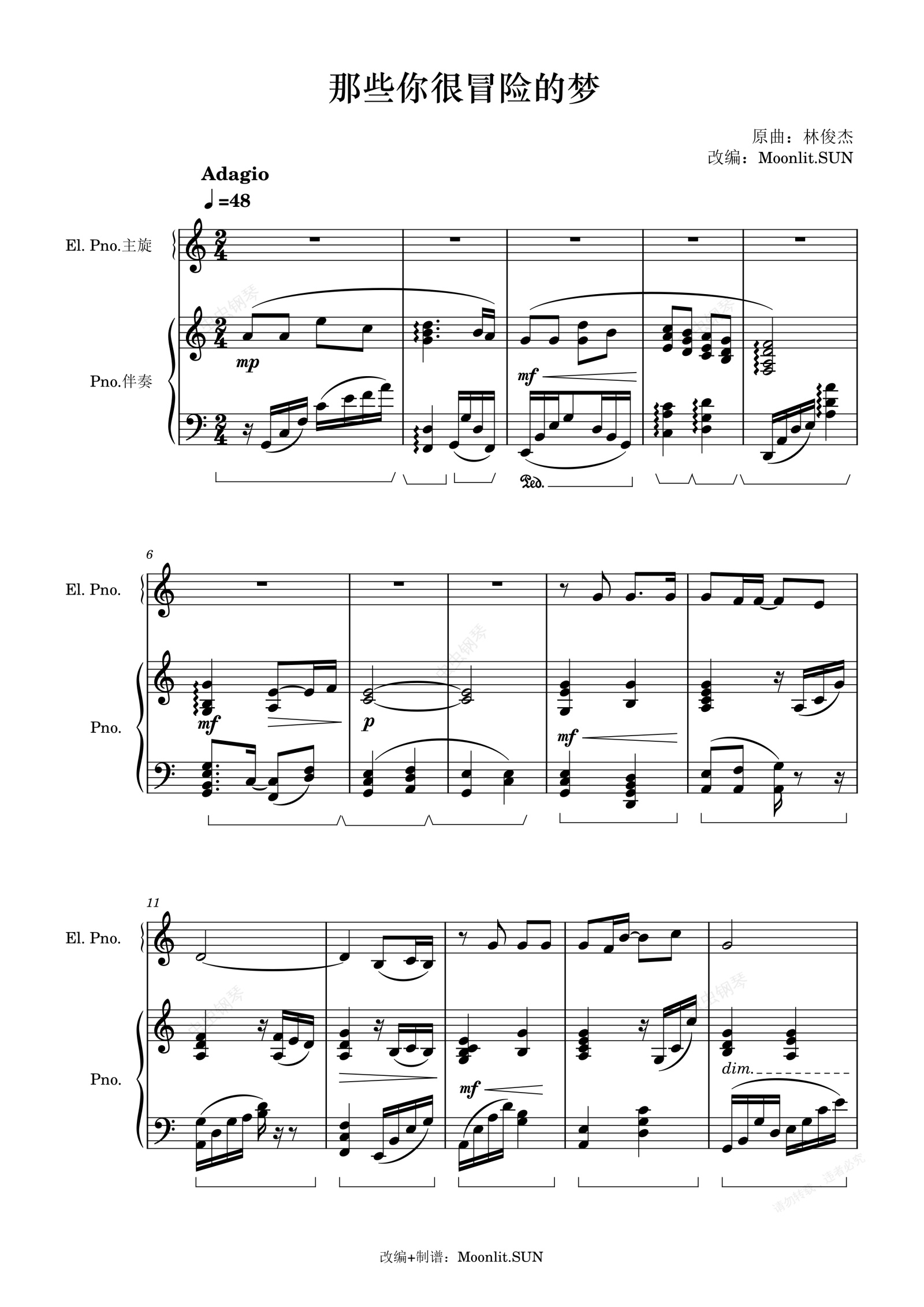 钢琴谱:那些你很冒险的梦-华丽改编版