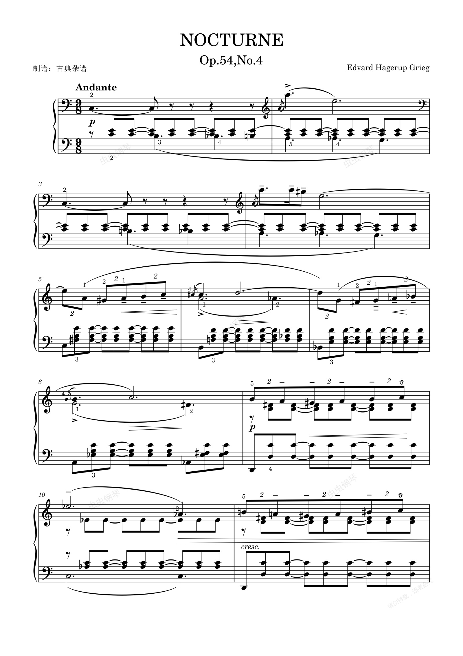 钢琴谱:夜曲(Nocturne)格里格 Op.54,No.4