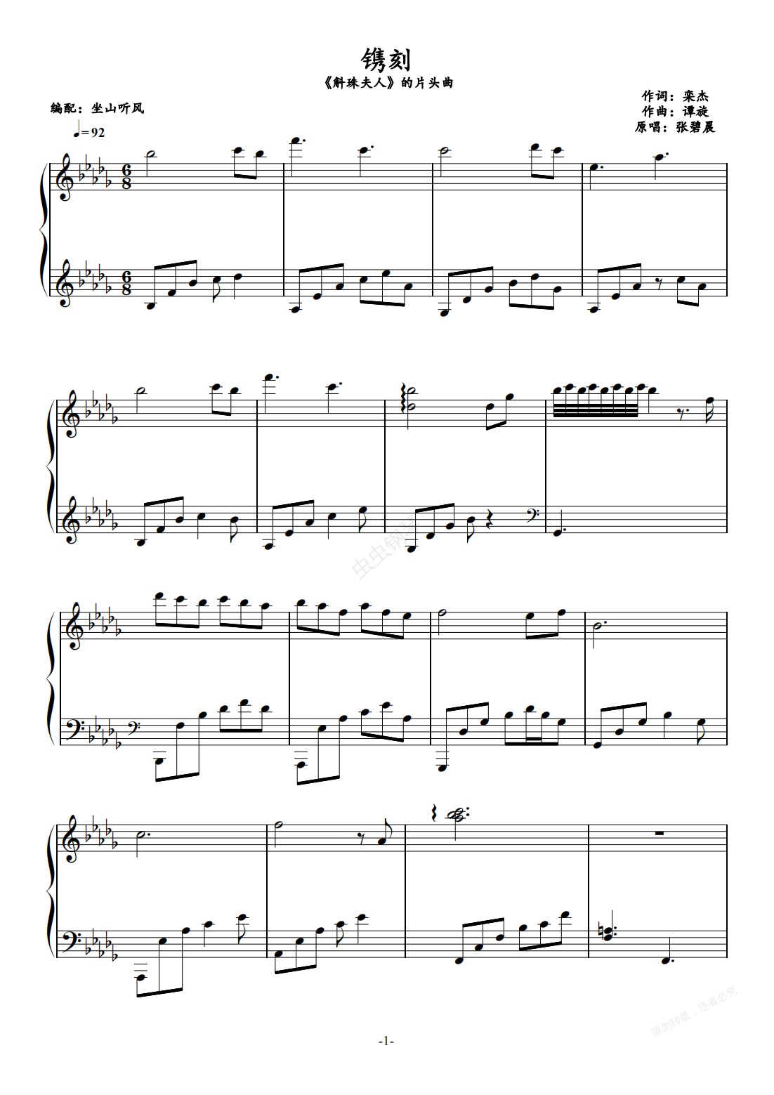 钢琴谱:【降D】镌刻——《斛珠夫人》片头曲