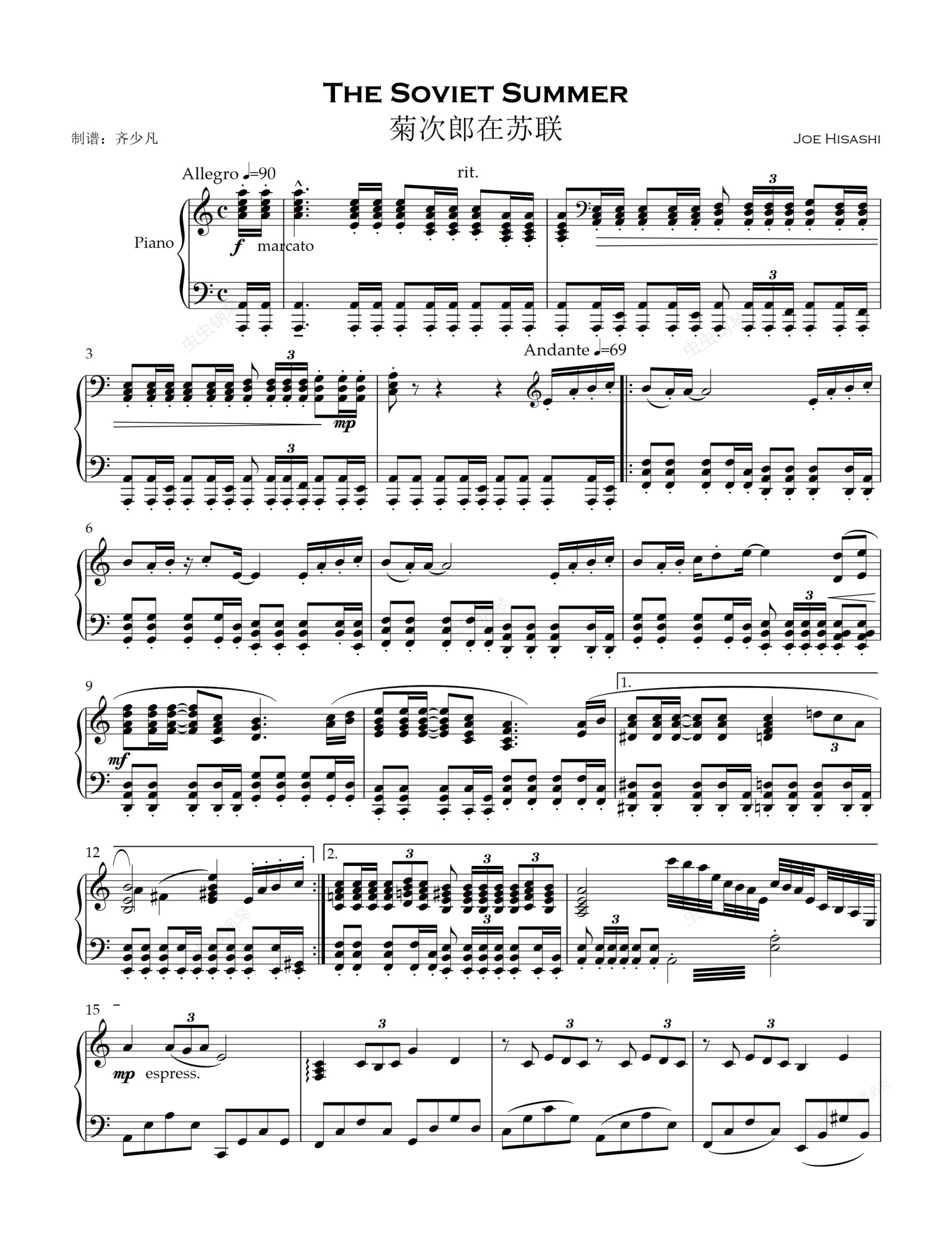 钢琴谱:【气突苏】菊次郎在苏联/Summer