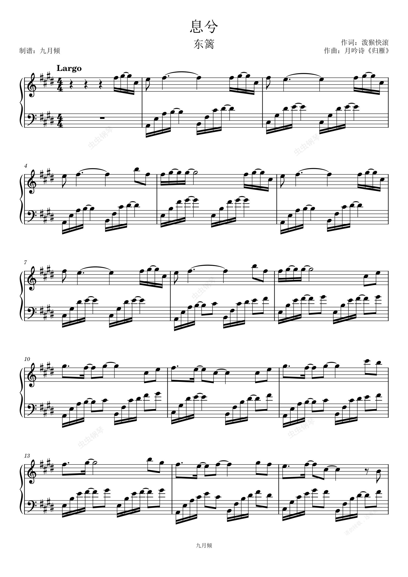 钢琴谱:九月倾 | 息兮 原版演奏谱【东篱】