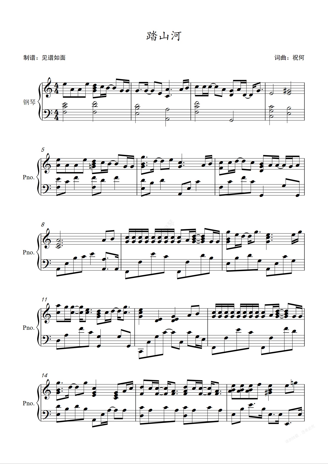 钢琴谱:踏山河【C调进阶】