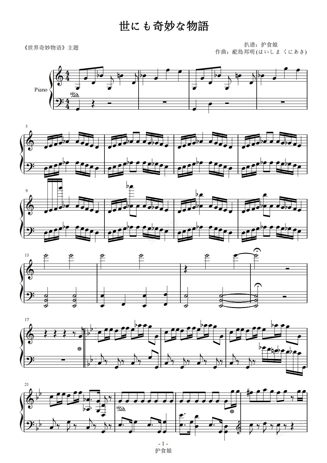 钢琴谱:世界奇妙物语/ガラモン・ソング