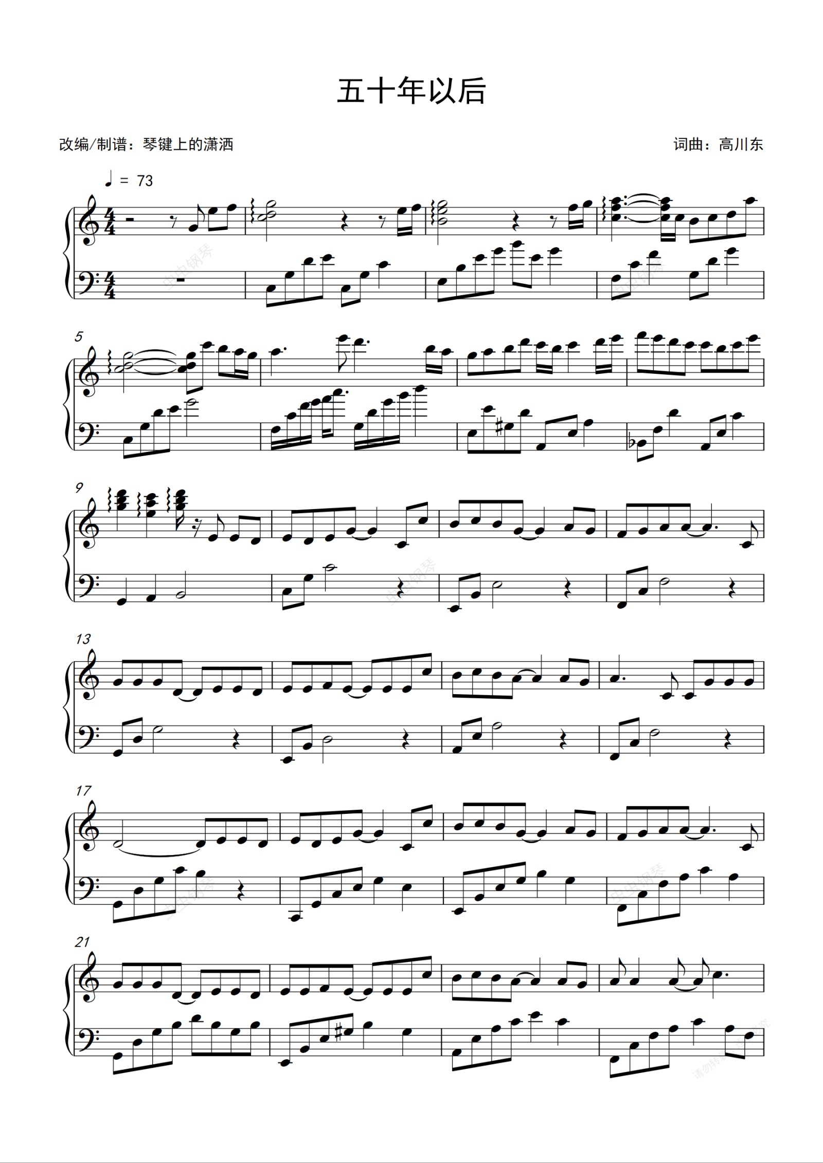 钢琴谱:《五十年以后》-海来阿木-完美C调独奏