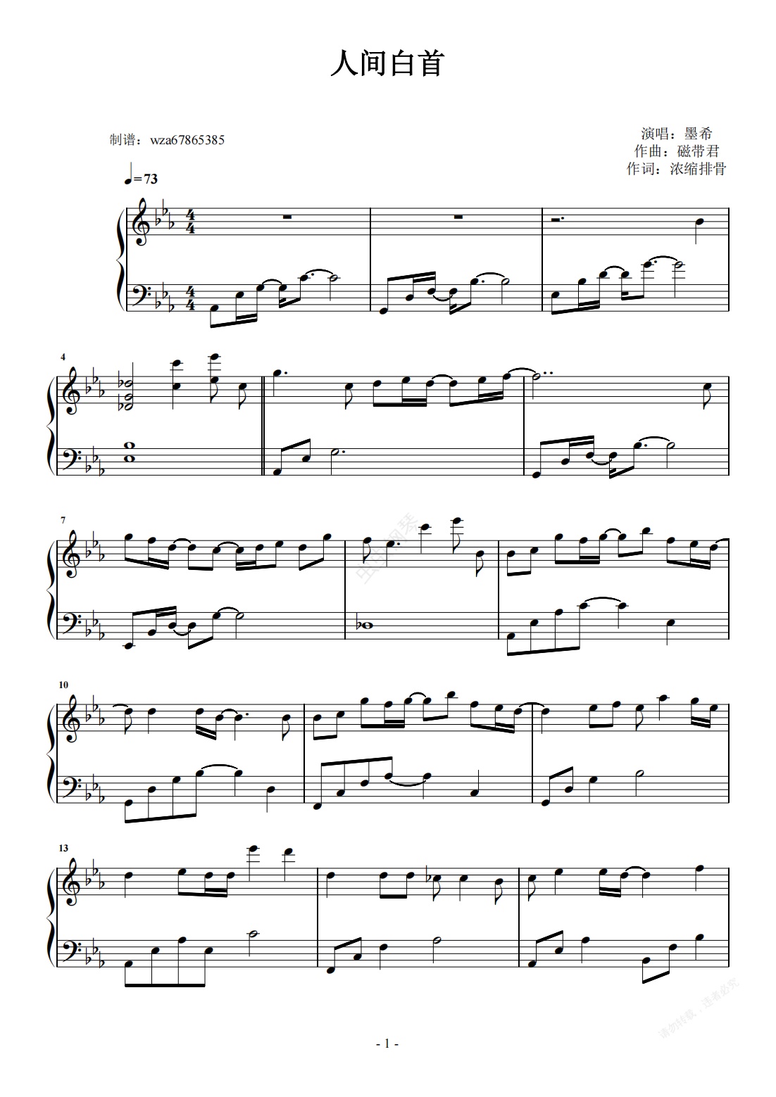 钢琴谱:人间白首