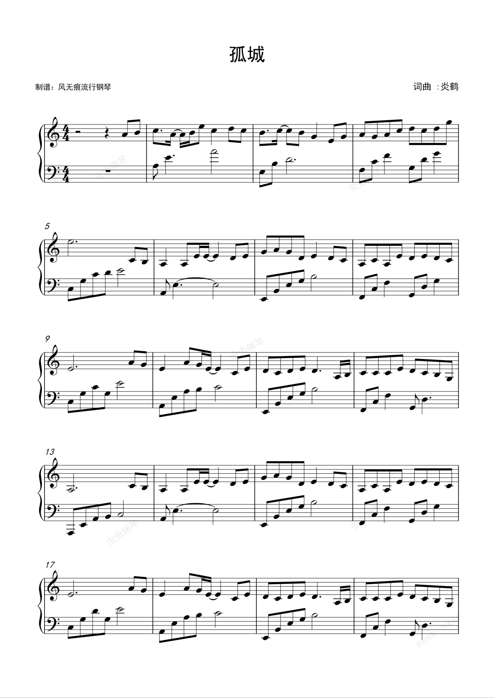 钢琴谱:C调-孤城-洛先生〖简易动听〗