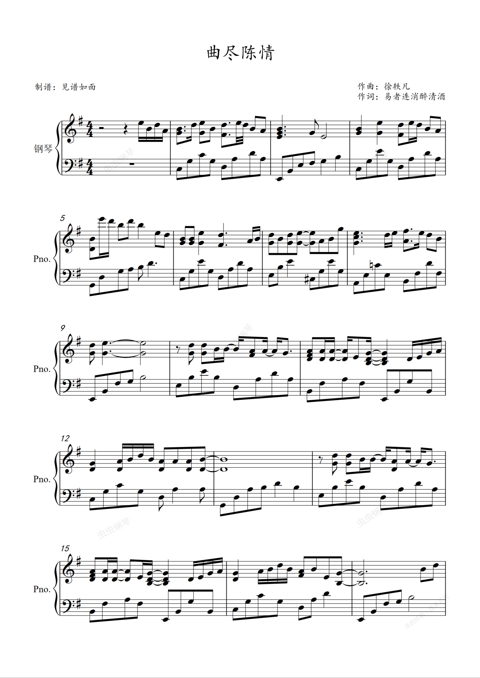 钢琴谱:曲尽陈情【G调进阶】