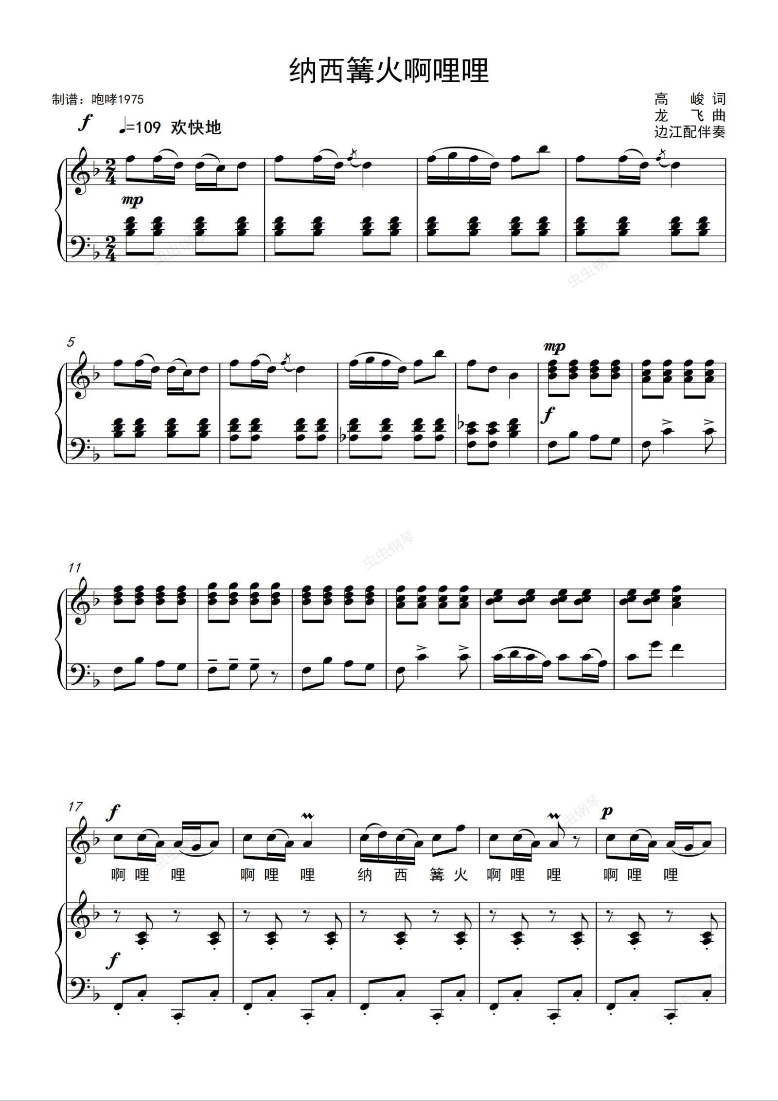 钢琴谱:纳西篝火啊哩哩—完整曲谱