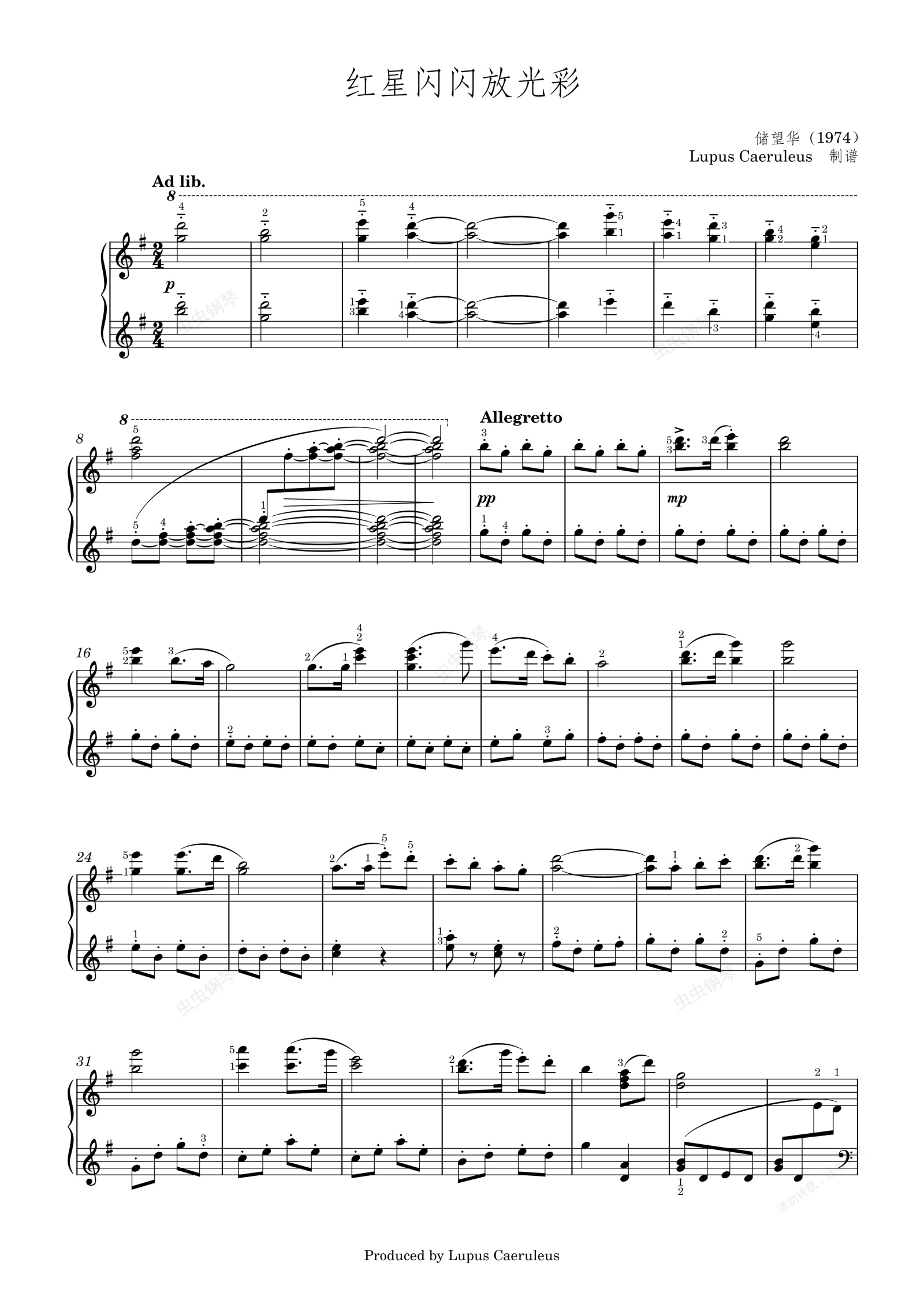 钢琴谱:储望华-红星闪闪放光彩(高清重制版)