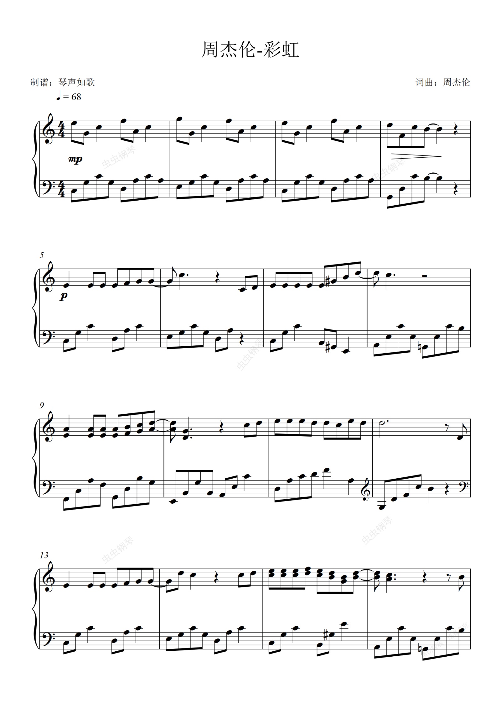 钢琴谱:周杰伦-彩虹 【好听易弹】