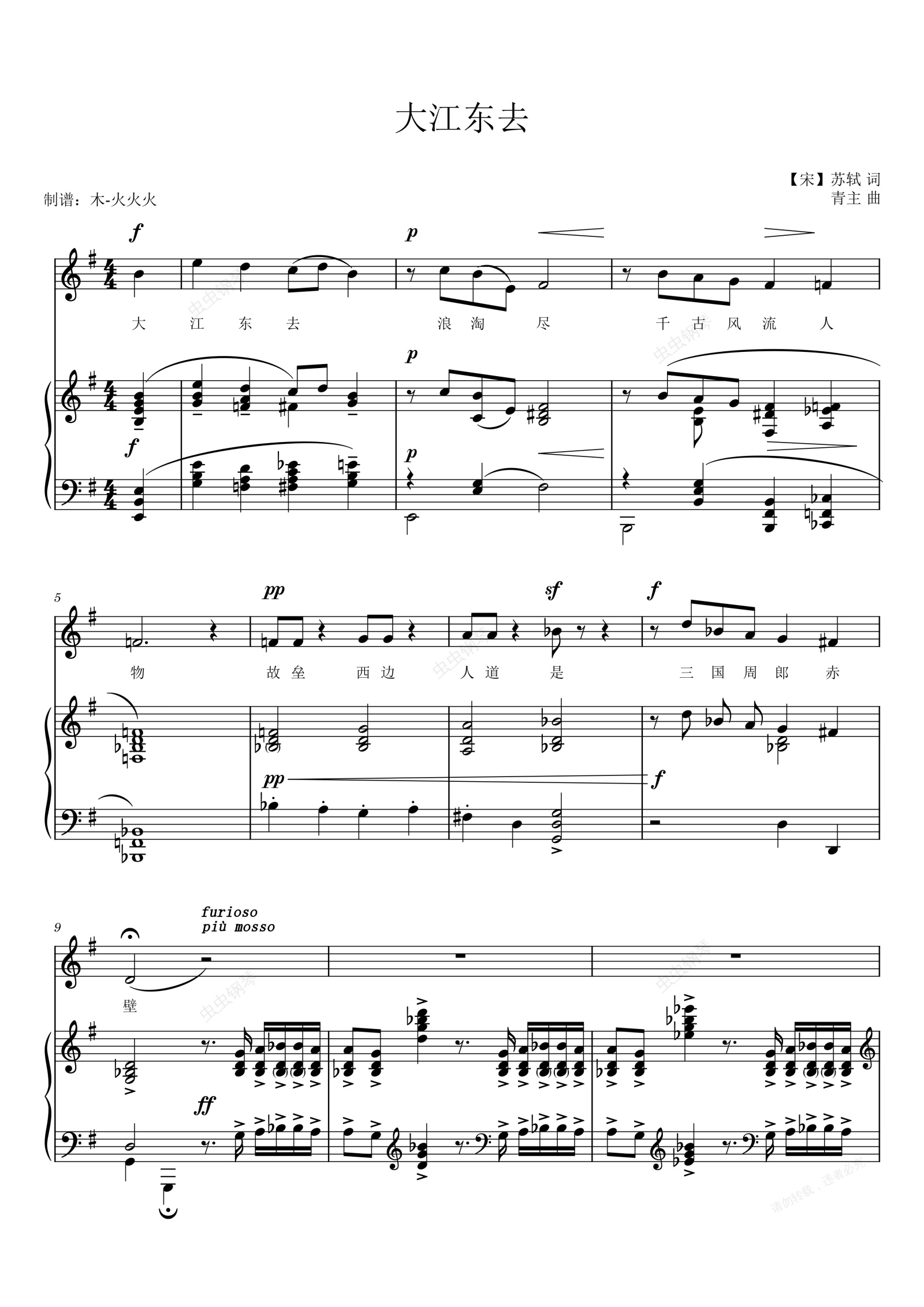 钢琴谱:艺考正谱:大江东去-G调(移调请留言)