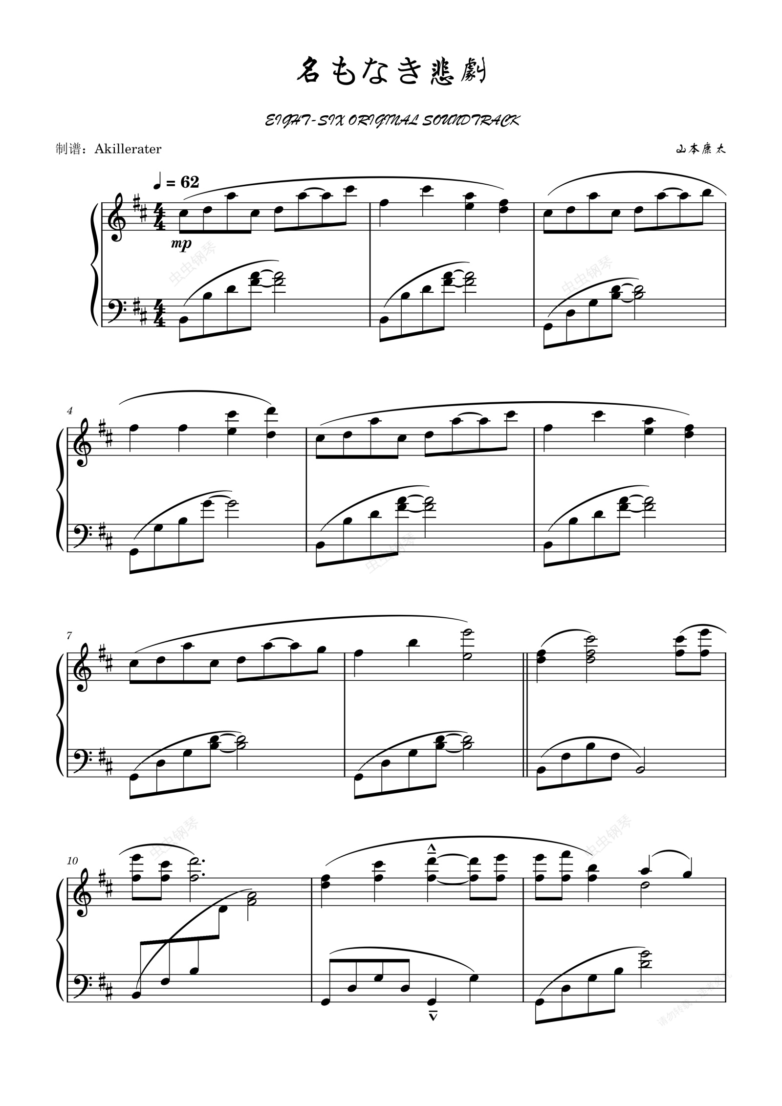 钢琴谱:名もなき悲劇(无名的悲剧《86-不存在的战区-》)