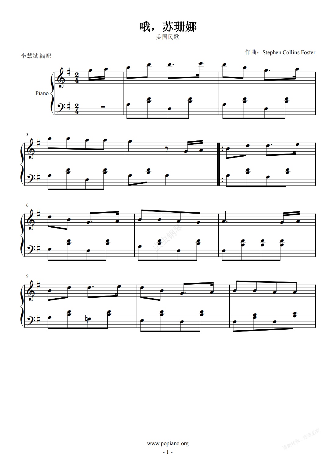 钢琴谱:噢!苏珊娜