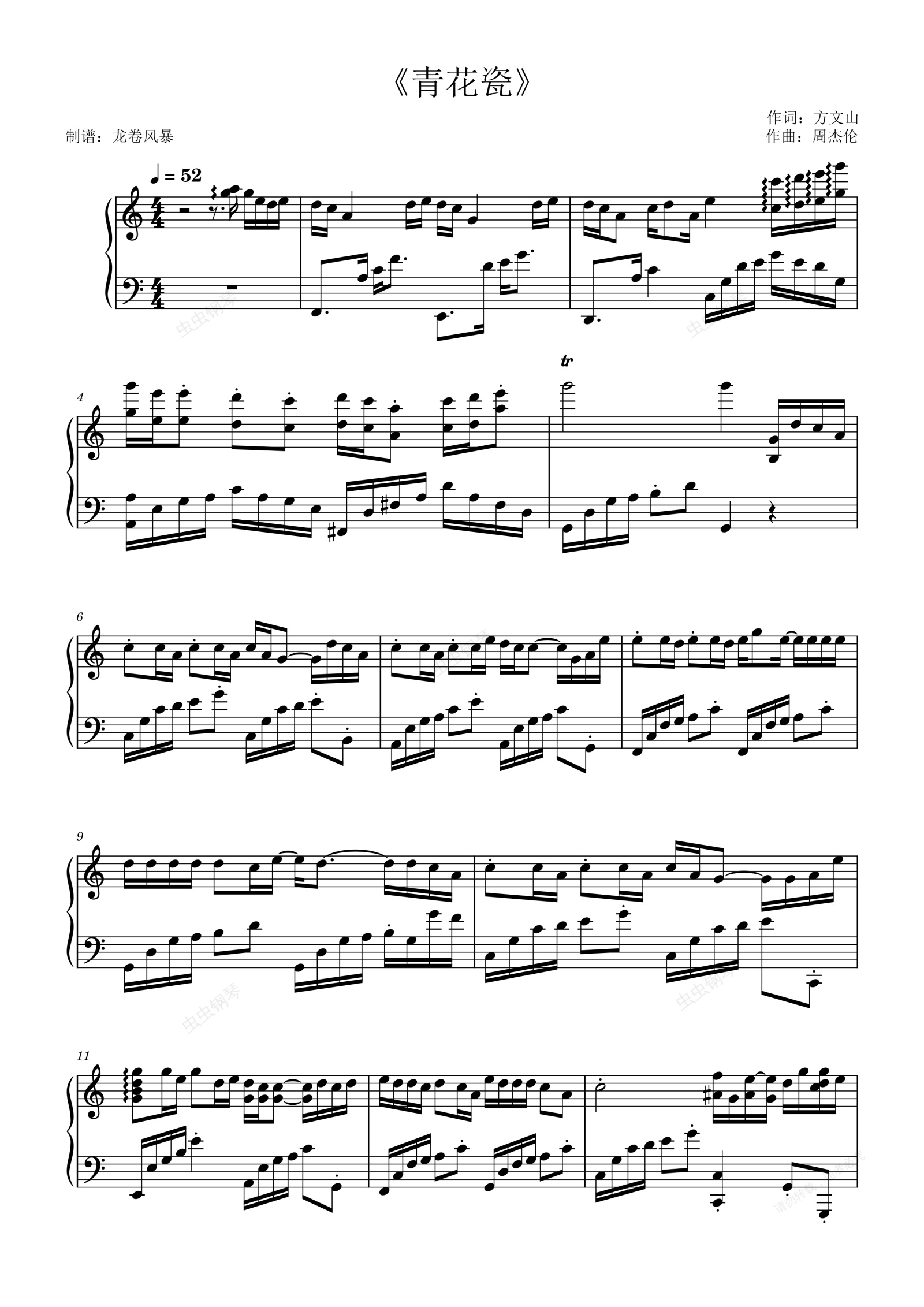 钢琴谱:《青花瓷》周杰伦(C调超唯美演奏版)