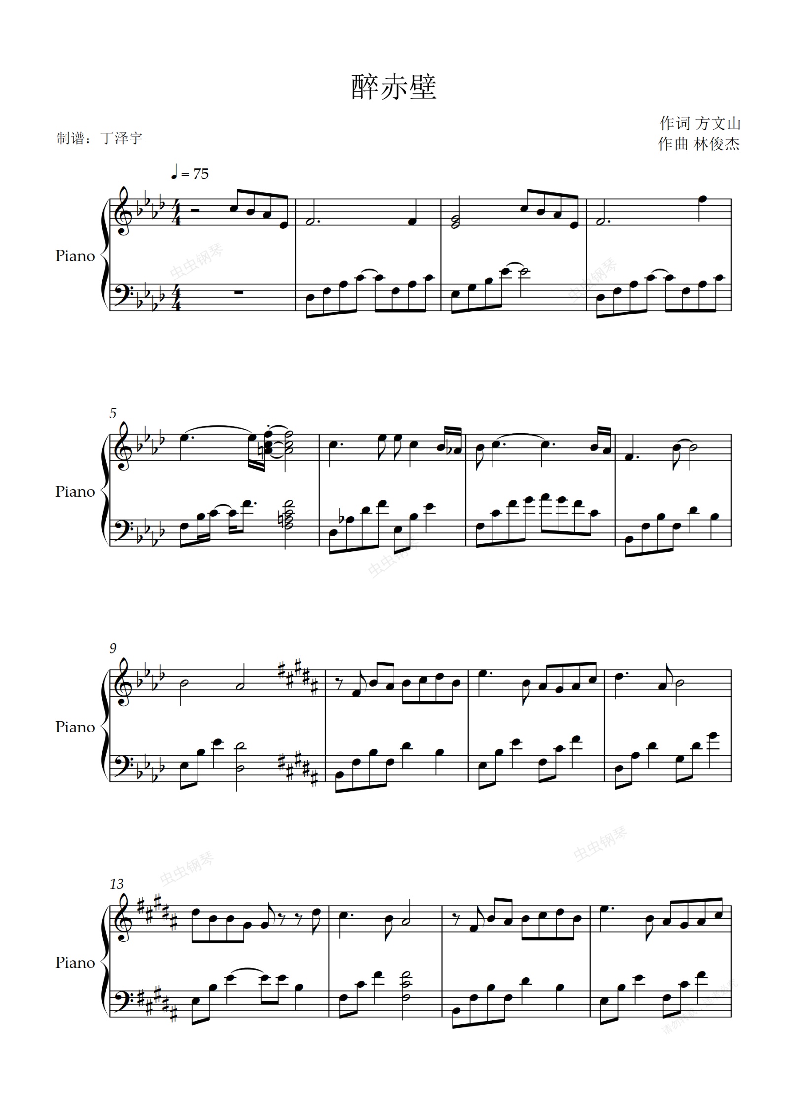 钢琴谱:醉赤壁钢琴独奏谱