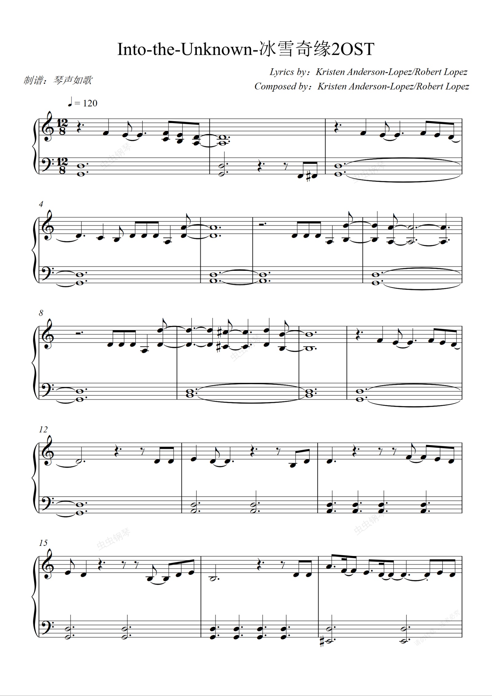 钢琴谱:冰雪奇缘2-Into-the-Unknown 【爆好听纯音乐】