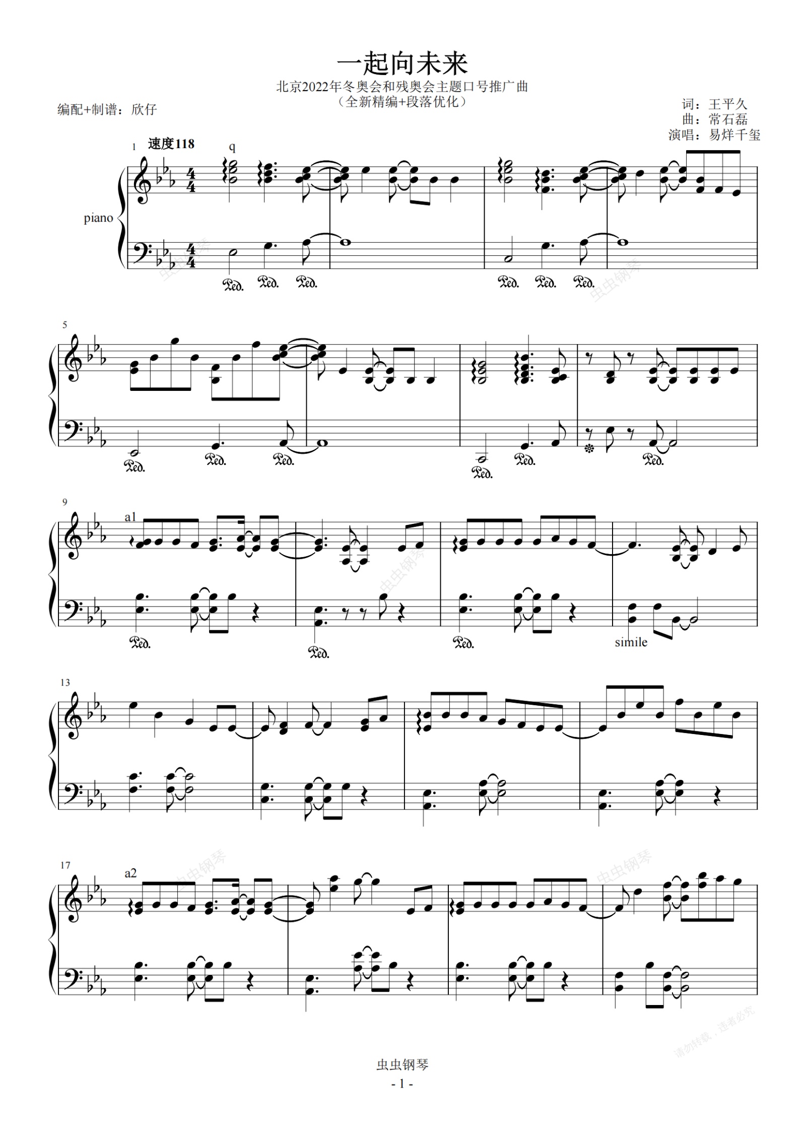 钢琴谱:易烊千玺-降E《一起向未来》(2022北京冬奥会和冬残奥会主题口号推广歌曲)