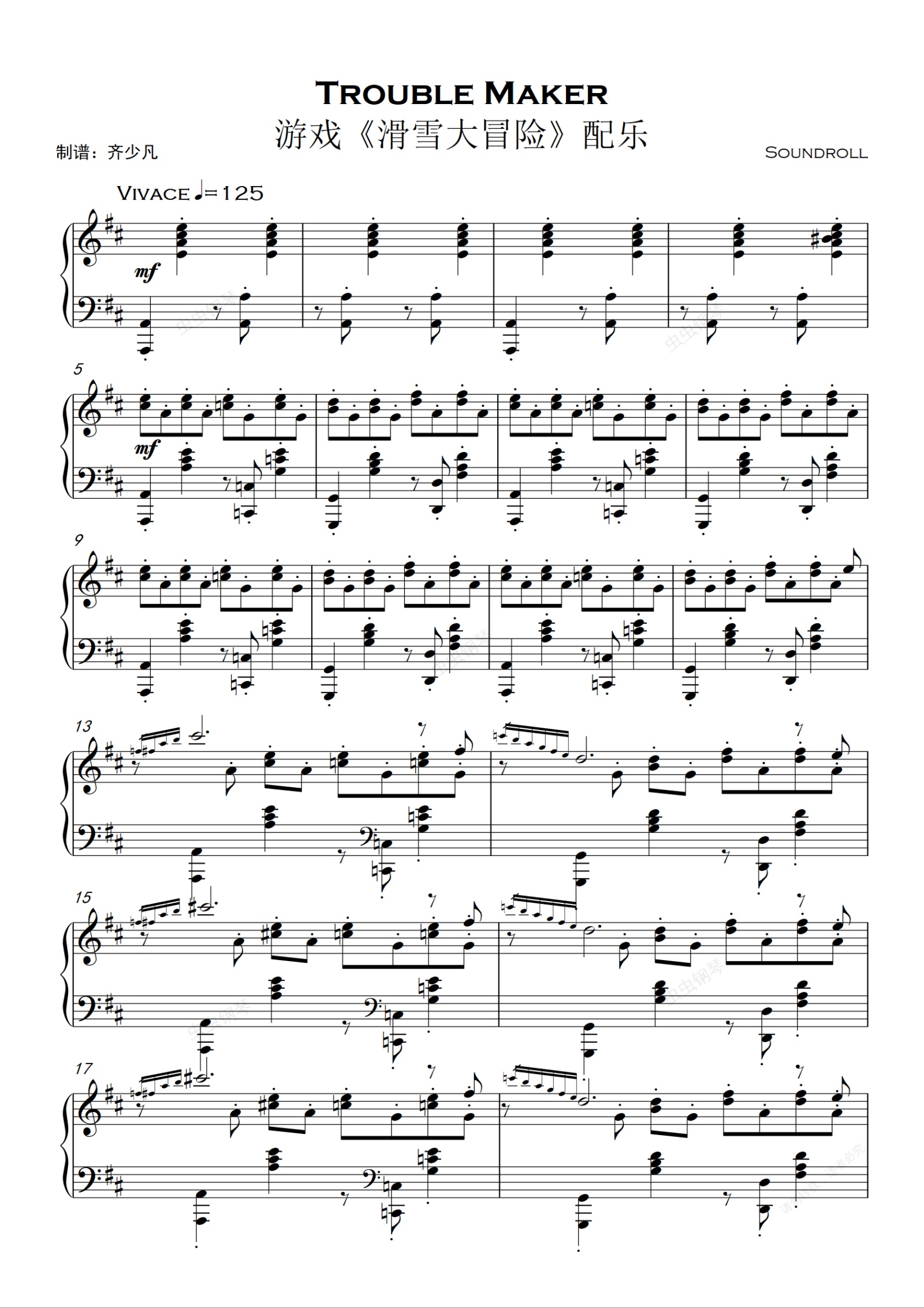 钢琴谱:Trouble Maker(游戏《滑雪大冒险》配乐)