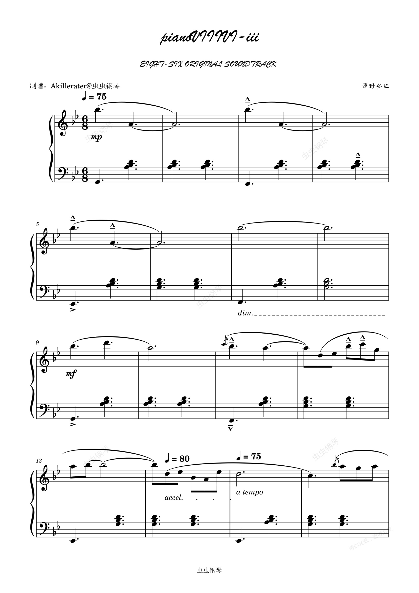 动漫《86-不存在的战区-》插曲,由于这首曲子速度变化过于频繁及复杂,乐谱里把速度都标记了出来,后续可看我更新的演示视频