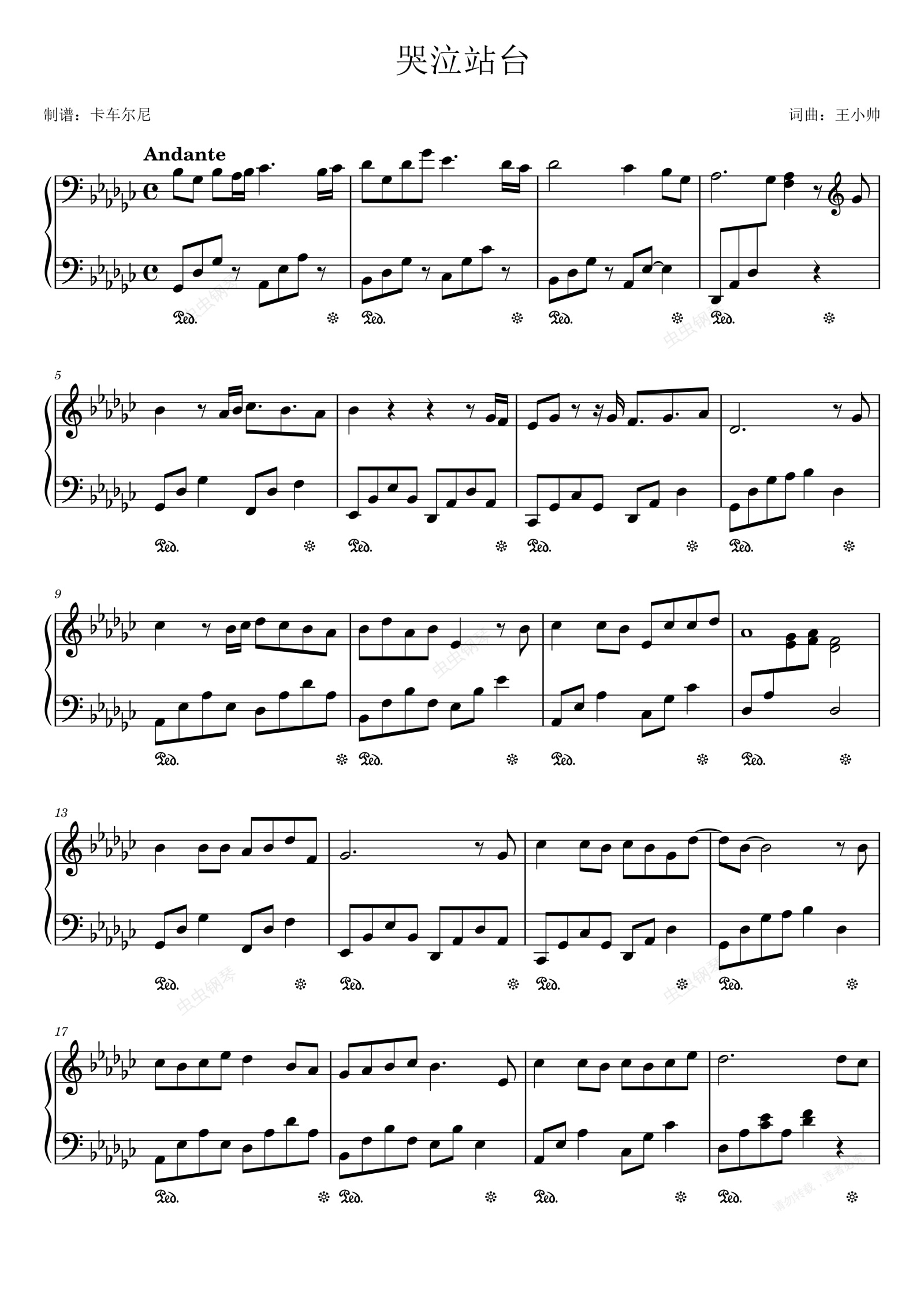 钢琴谱:抖音热歌《哭泣站台》原调版