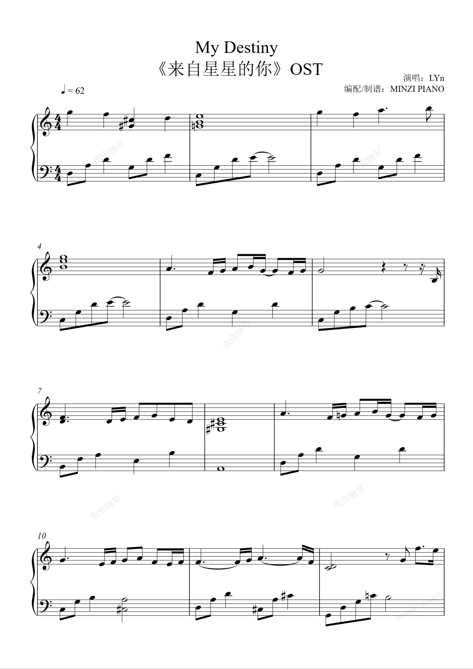 钢琴谱:《My Destiny》来自星星的你 好听易弹
