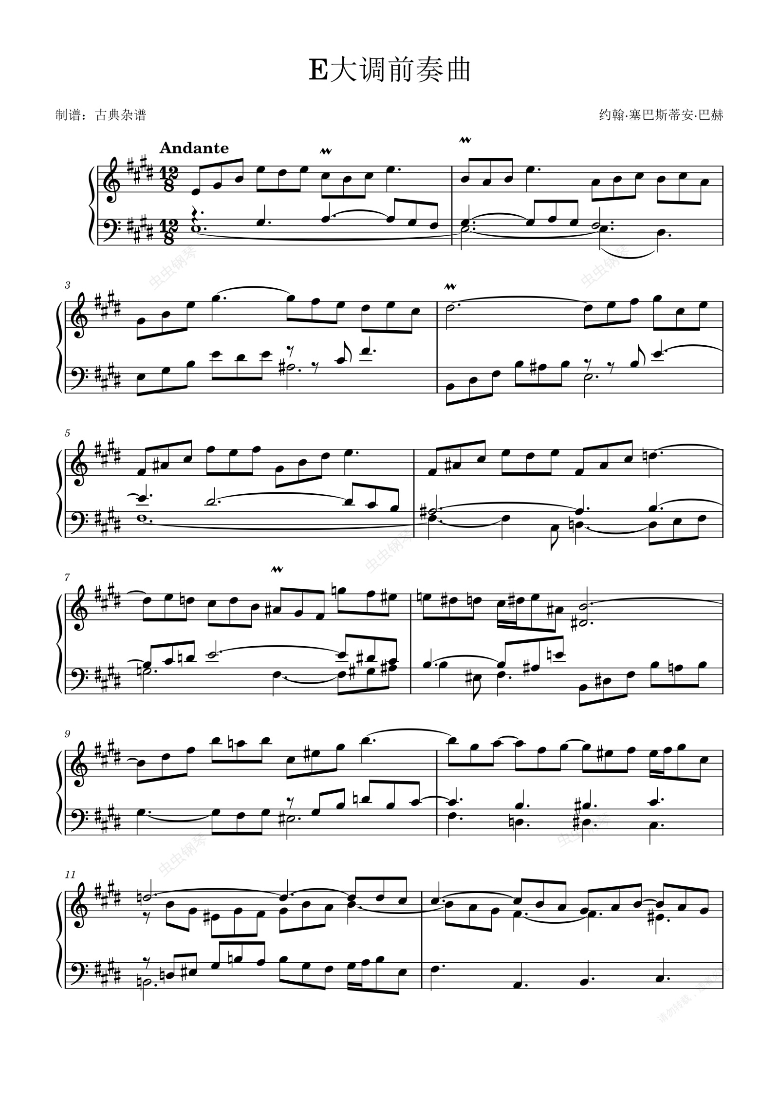 钢琴谱:8-2.E大调前奏曲《钢琴考级曲集》2022版