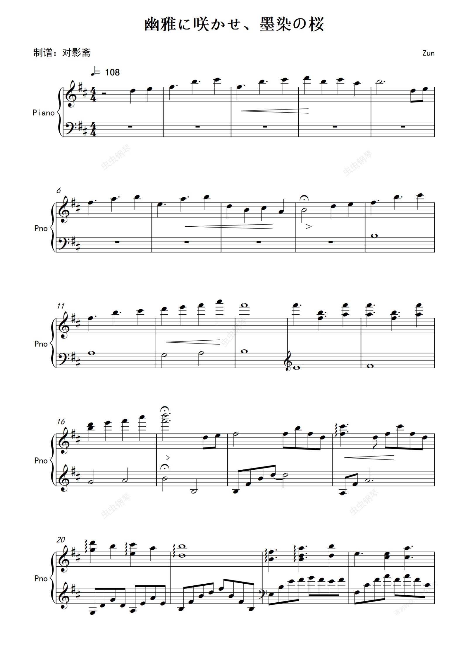 钢琴谱:东方妖妖梦:幽雅に咲かせ、墨染の桜