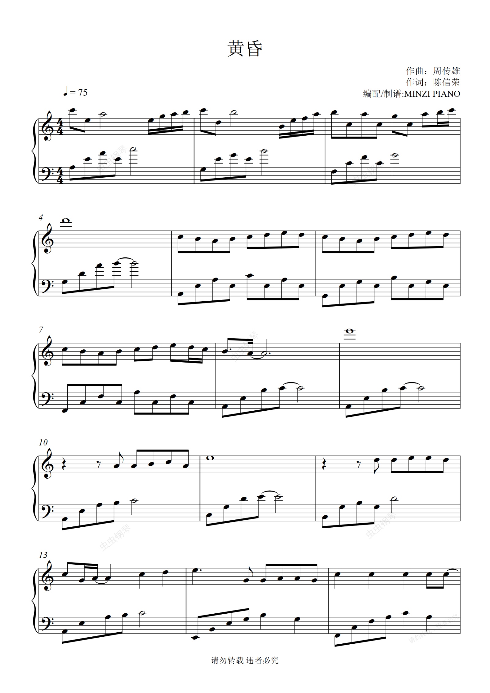 钢琴谱:周传雄《黄昏》好听易弹奏