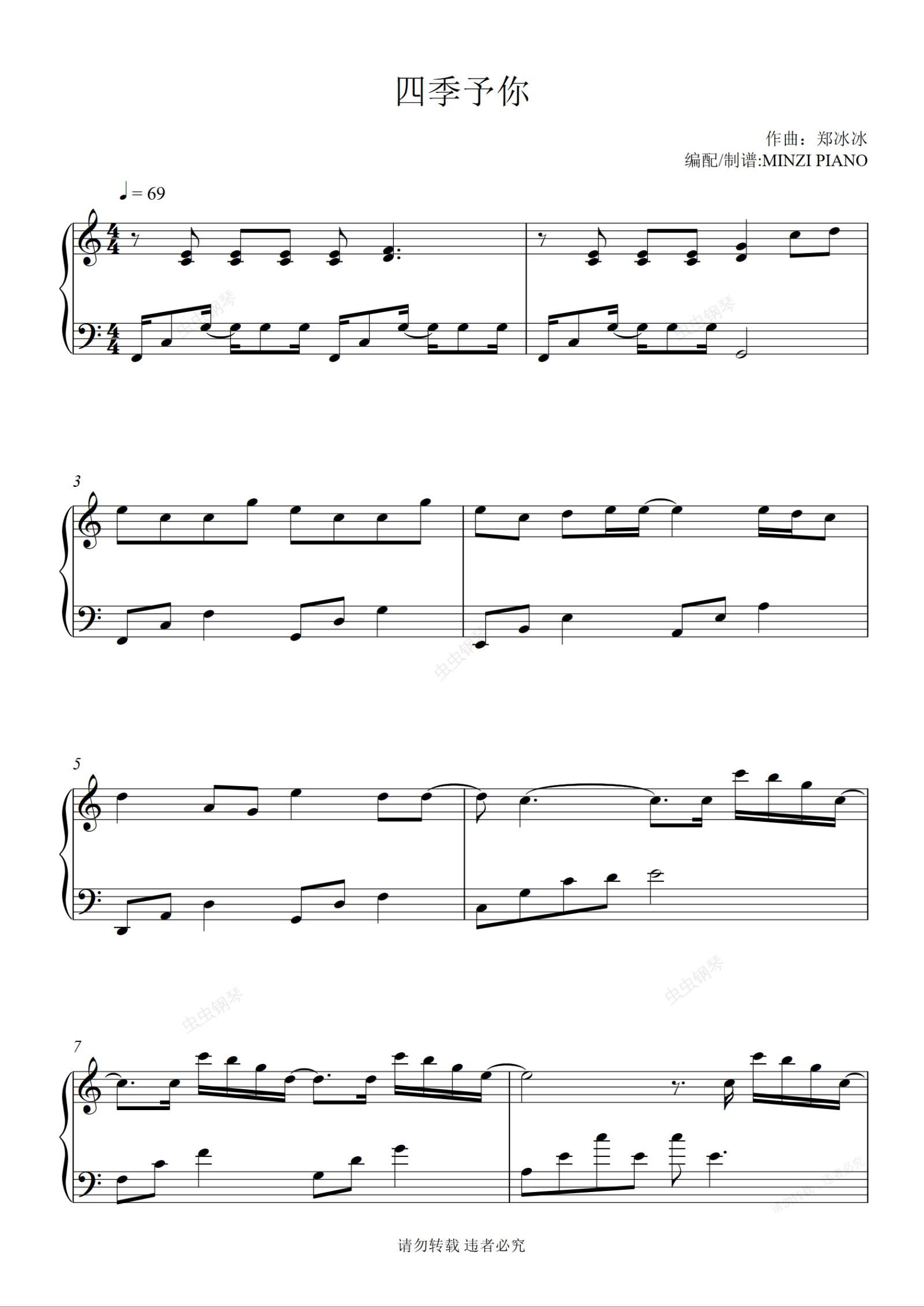 钢琴谱:程响《四季予你》C调简版 好听易弹奏