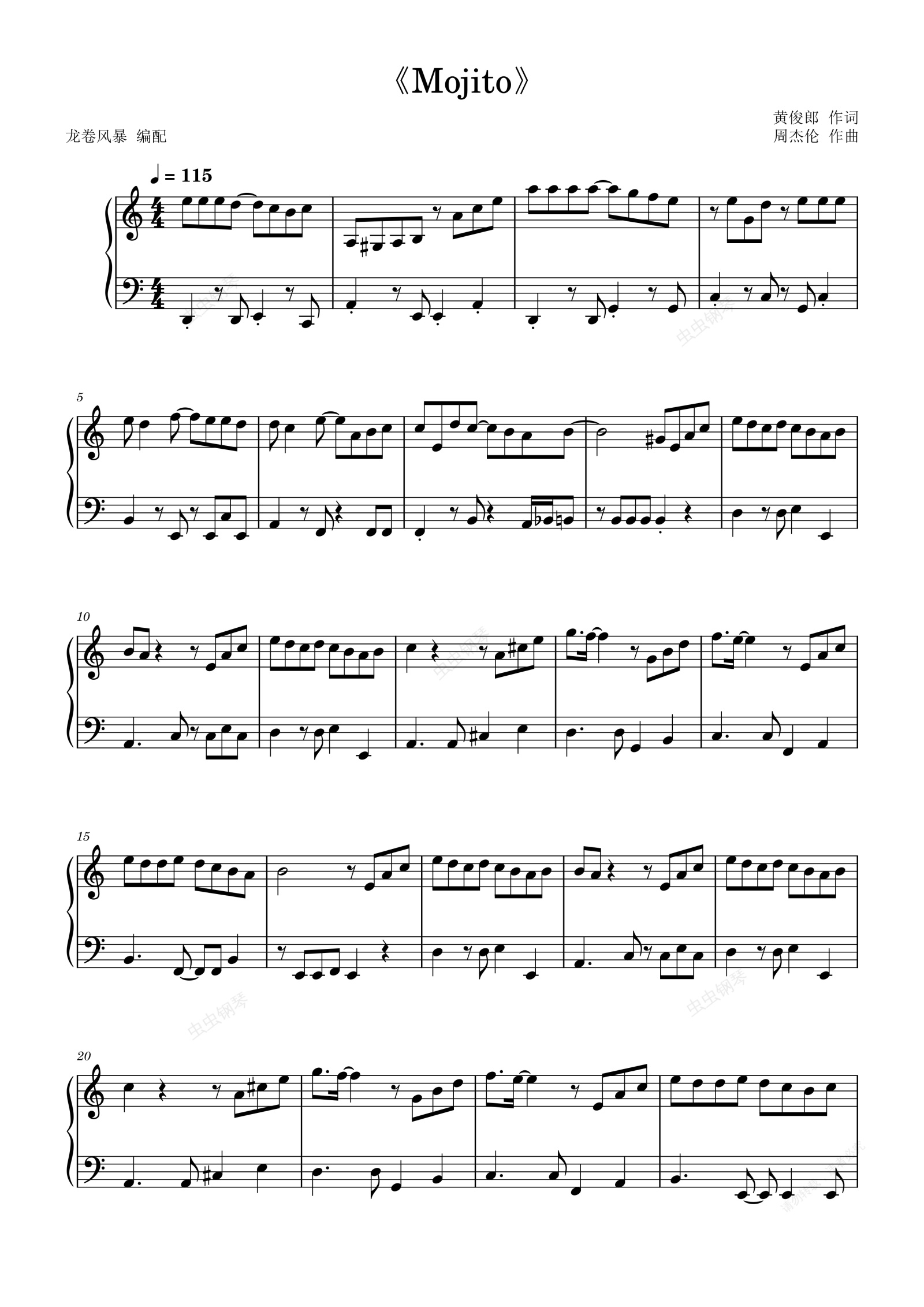 钢琴谱:《Mojito(莫吉托)》周杰伦(C调简单版)