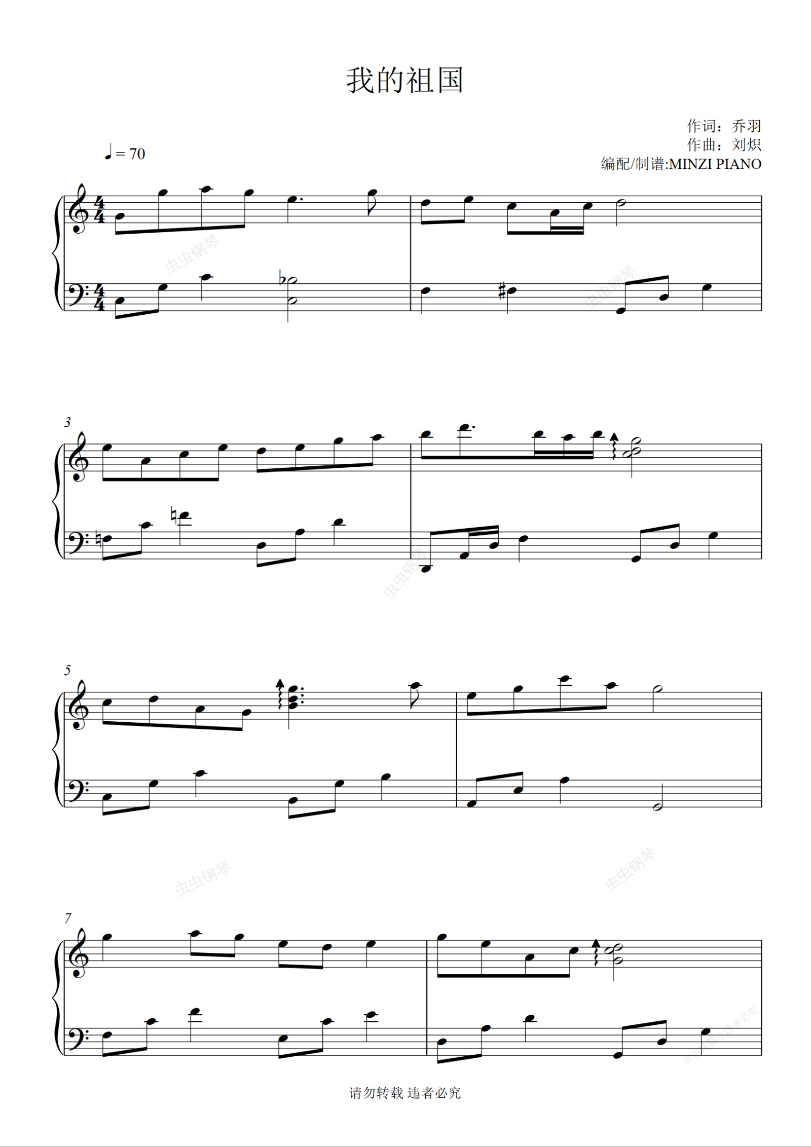 钢琴谱:彭丽媛《我的祖国》C调简版 好听易弹奏