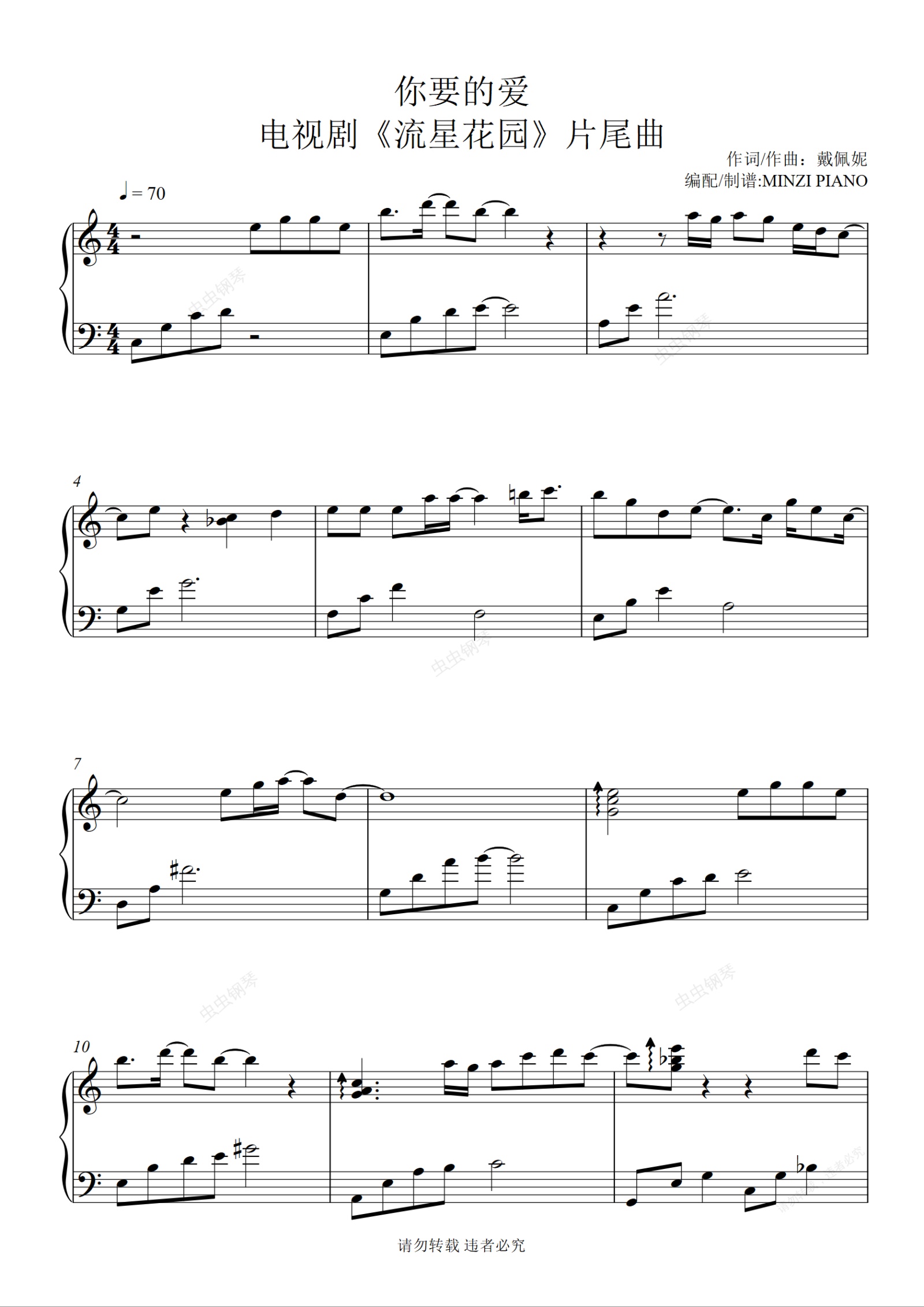 钢琴谱:戴佩妮《你要的爱》C调简版 好听易演奏