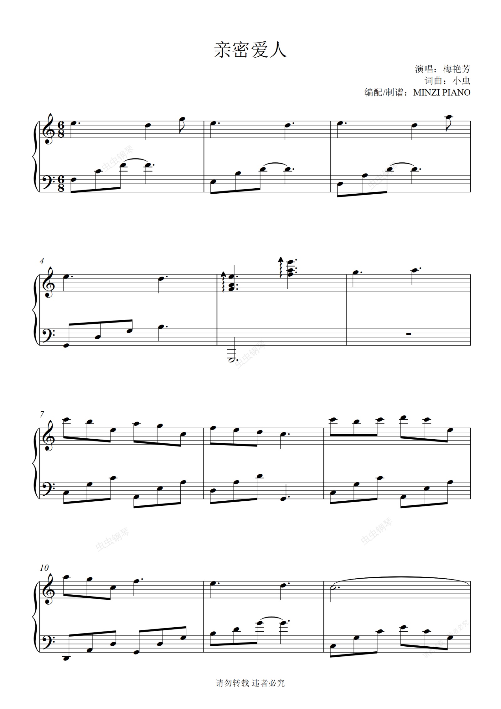 钢琴谱:梅艳芳《亲密爱人》C调
