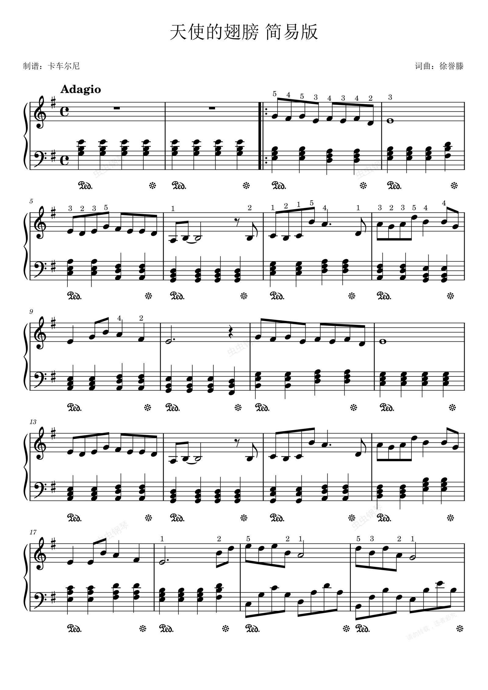 钢琴谱:天使的翅膀 拜厄难度儿童简易版