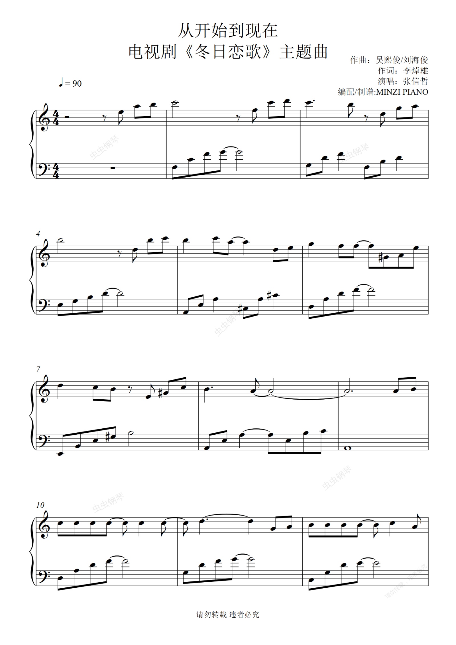 钢琴谱:冬日恋歌《从开始到现在》张信哲