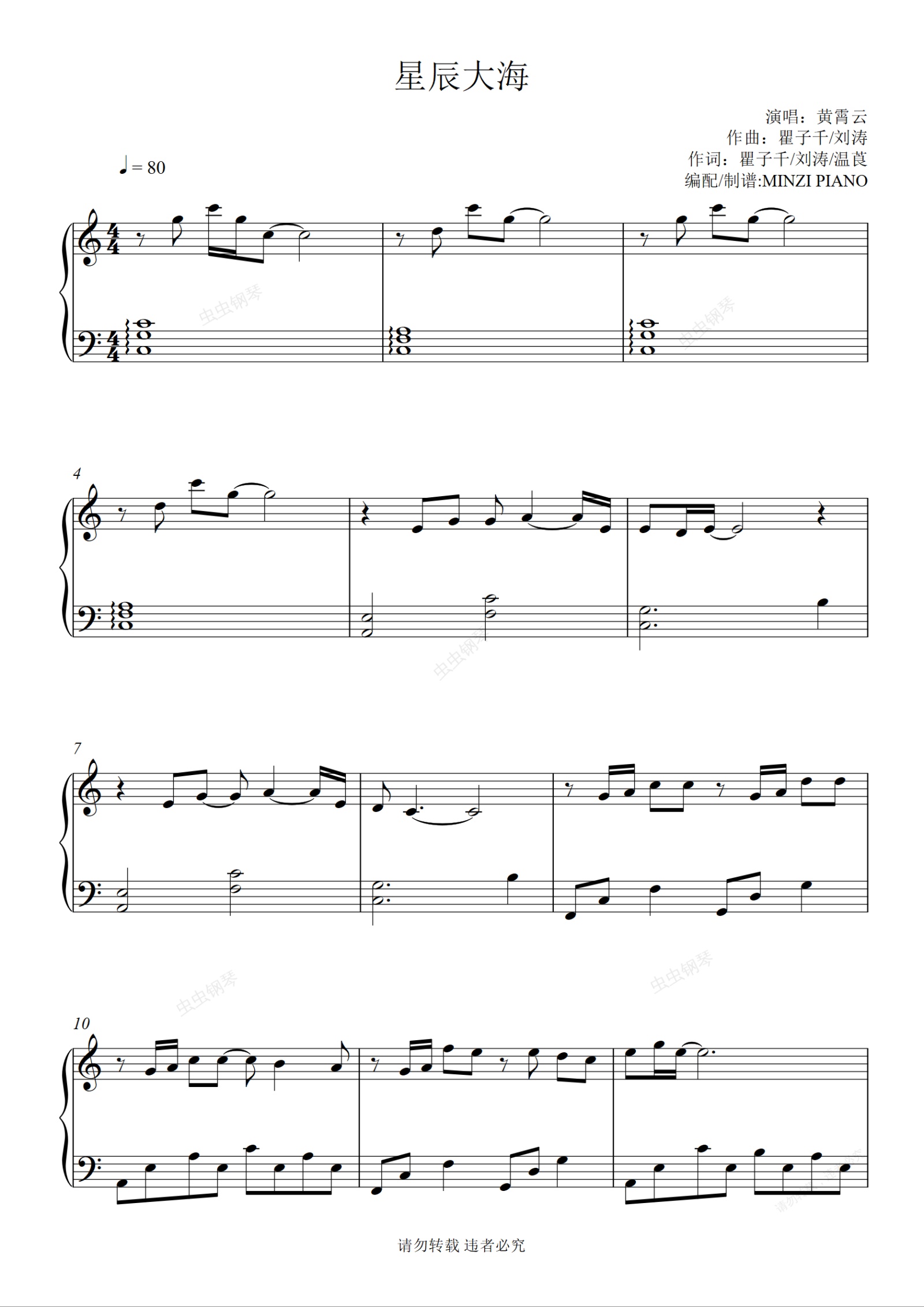 钢琴谱:《星辰大海》黄霄云