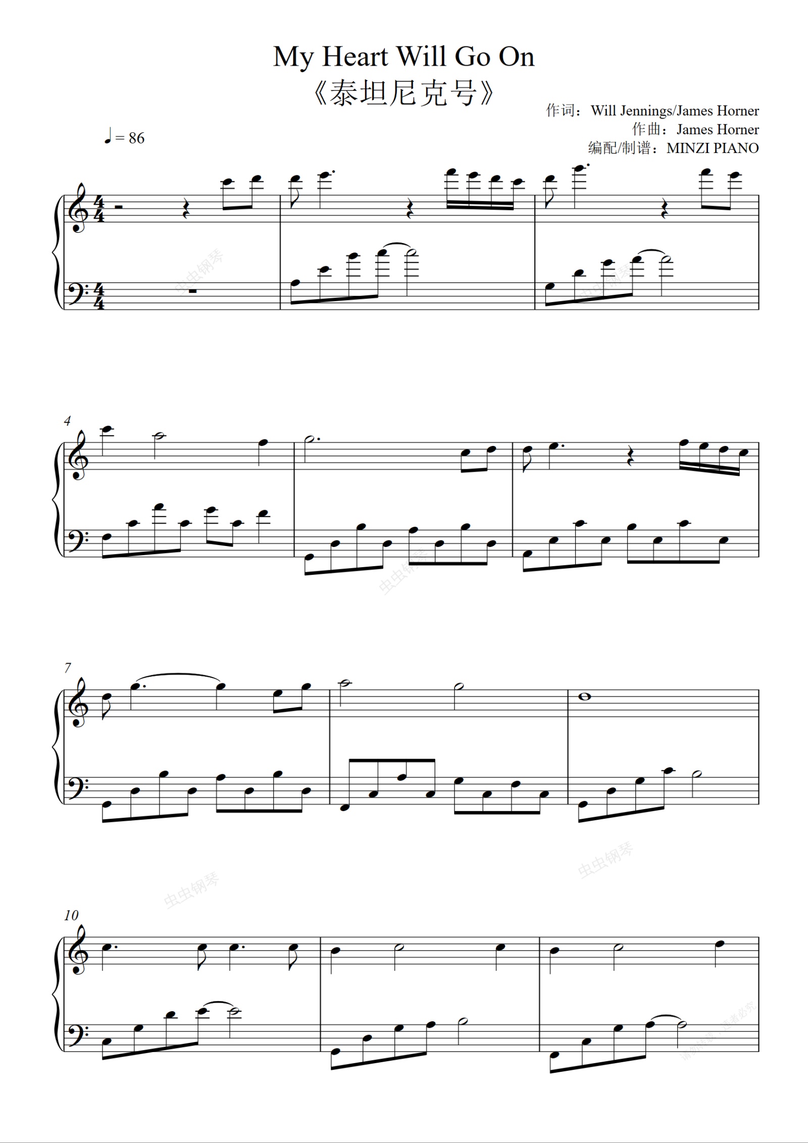钢琴谱:《My Heart Will Go On》席琳·迪翁