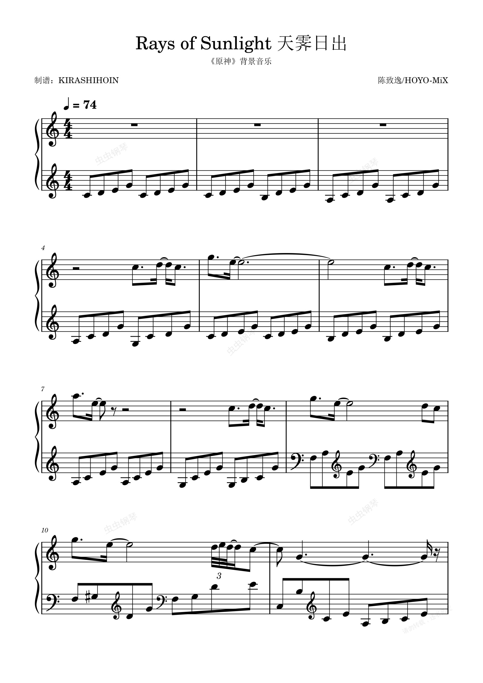钢琴谱:Rays of Sunlight 天霁日出(《原神》背景音乐)- 陈致逸