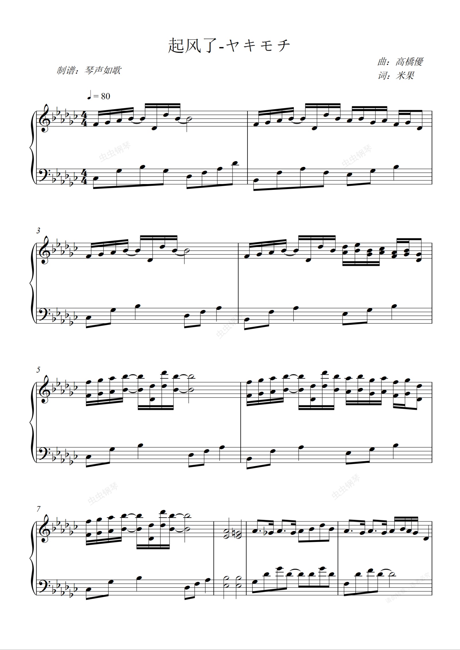 钢琴谱:起风了-ヤキモチ [高还原钢琴独奏]