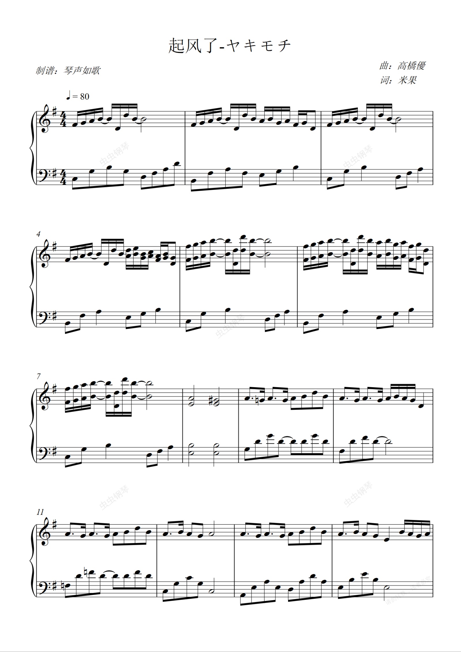 钢琴谱:起风了-ヤキモチ 【高还原G调】