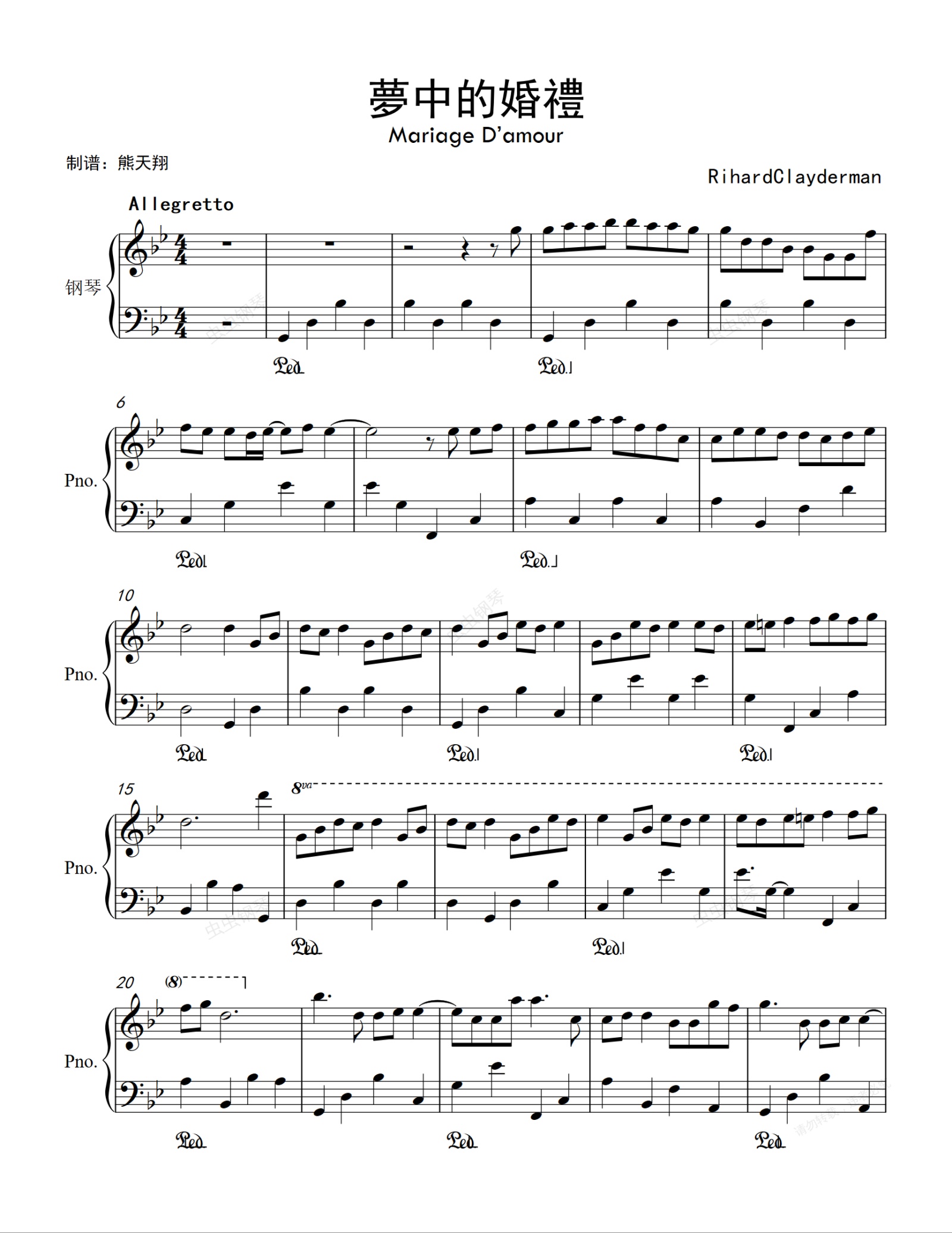 钢琴谱:夢中的婚禮-简易版