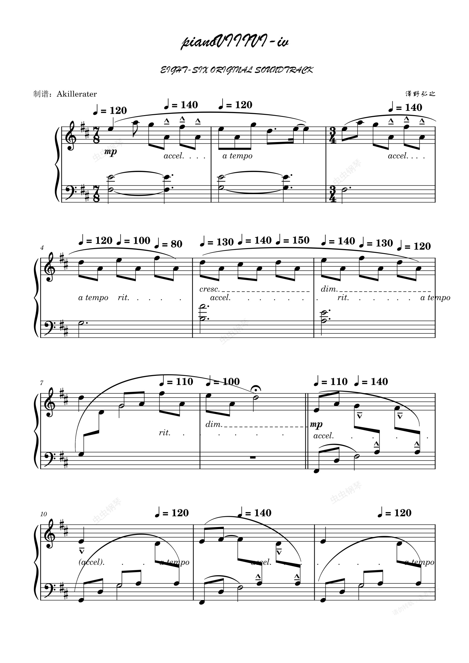 动漫《86-不存在的战区-》插曲,由于这首曲子速度变化过于频繁及复杂,乐谱里把速度都标记了出来,后续可看我更新的演示视频