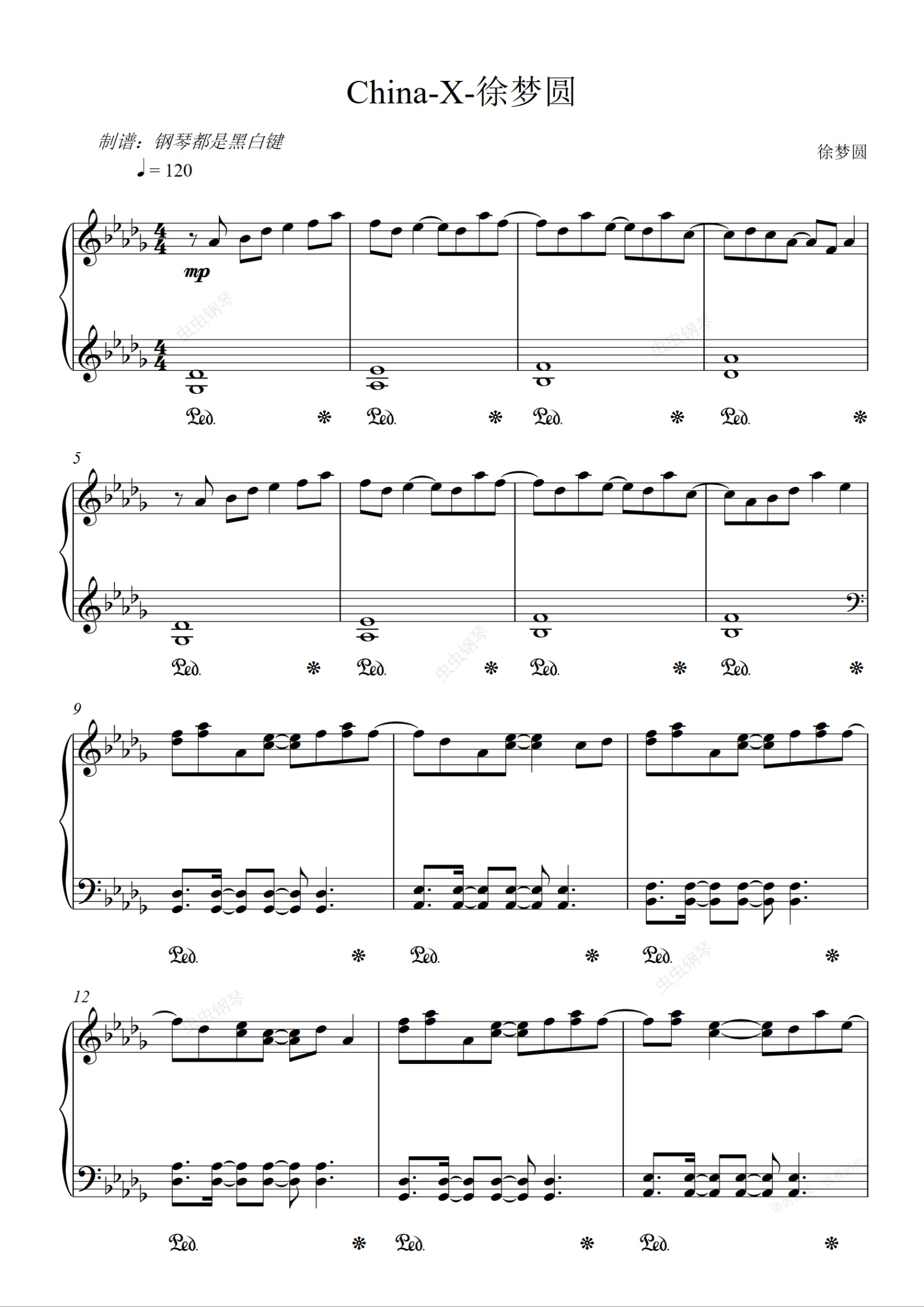 钢琴谱:China-X-徐梦圆 [超好听纯音乐]