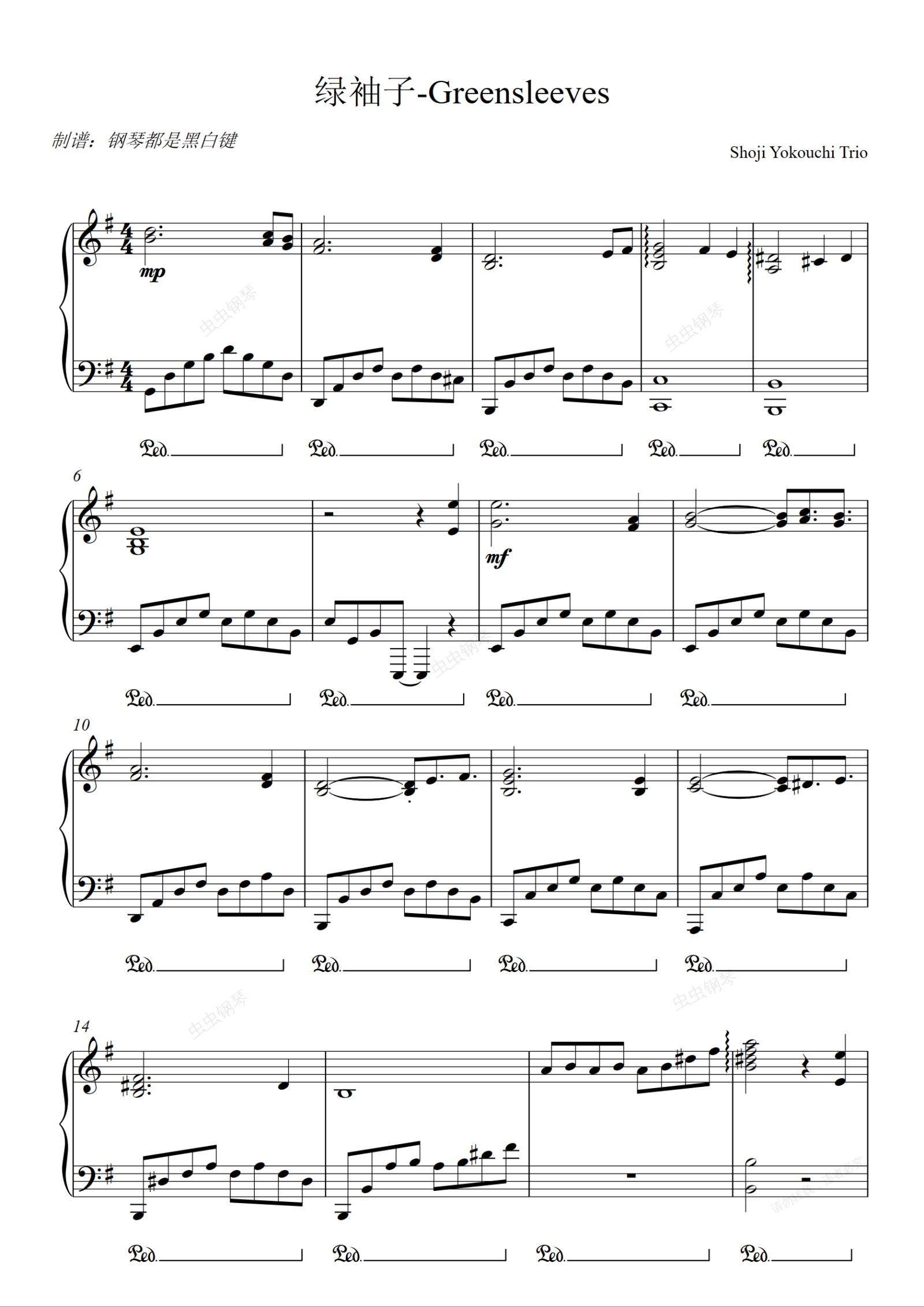钢琴谱:绿袖子-Greensleeves [超好听纯音乐]