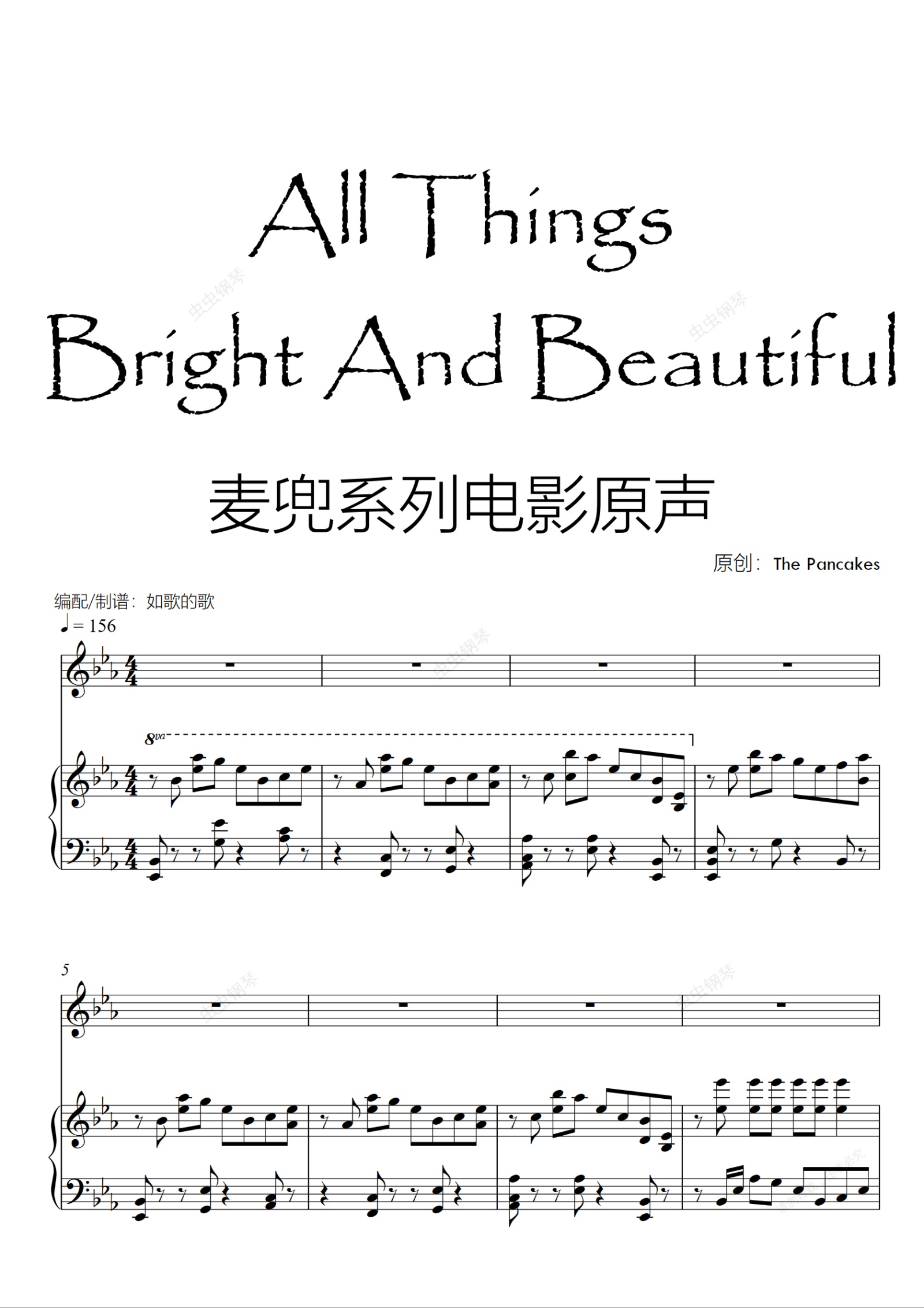 钢琴谱:All Things Bright And Beautiful麦兜动画原声童谣人声+钢伴